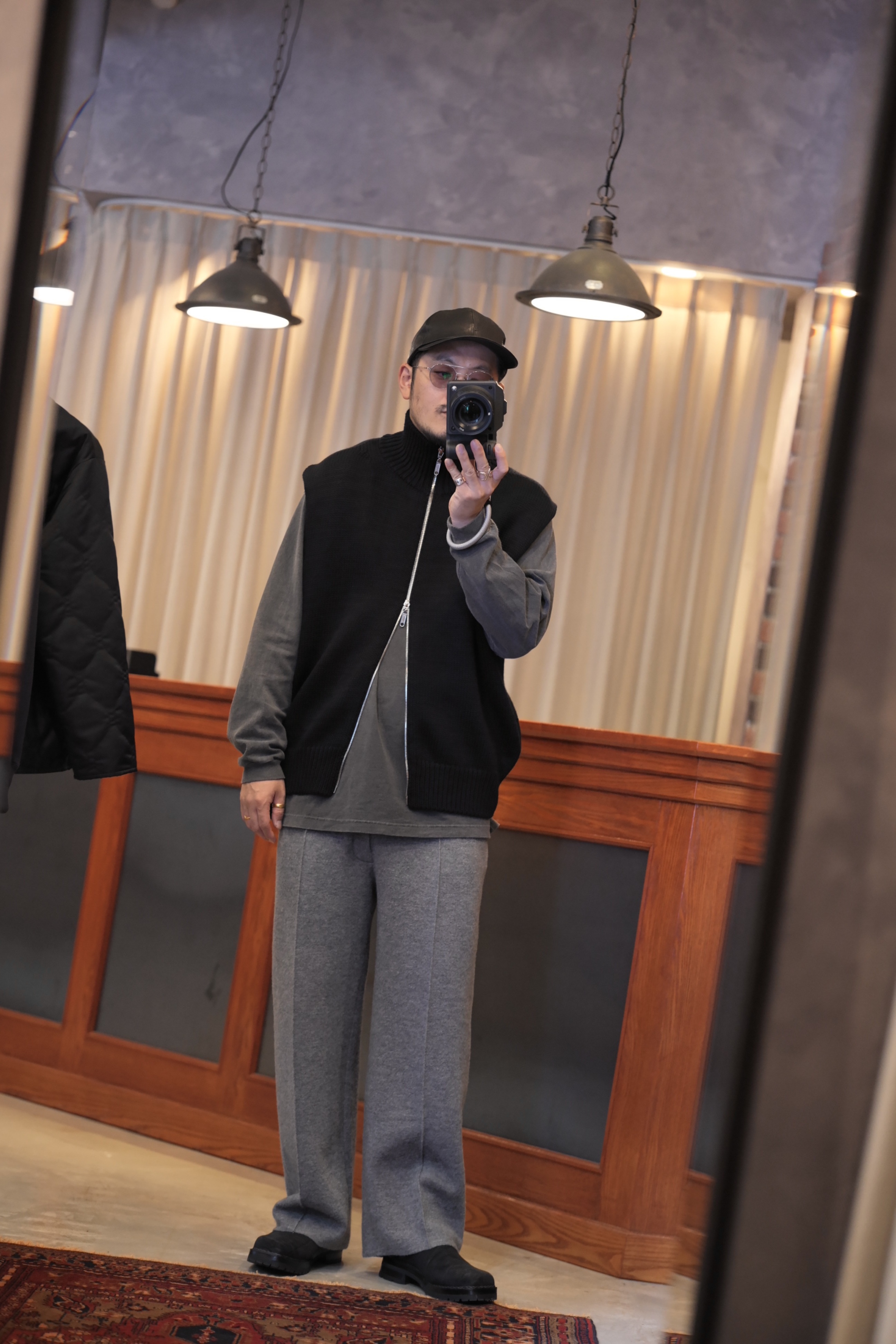 ニット:Olde H & Daughter(オールドエイチアンドドーター) 25AW “WOOL KNIT TRACK HALF ZIP” -CHARCOAL-¥ 64,900-(intax) 着用サイズ10