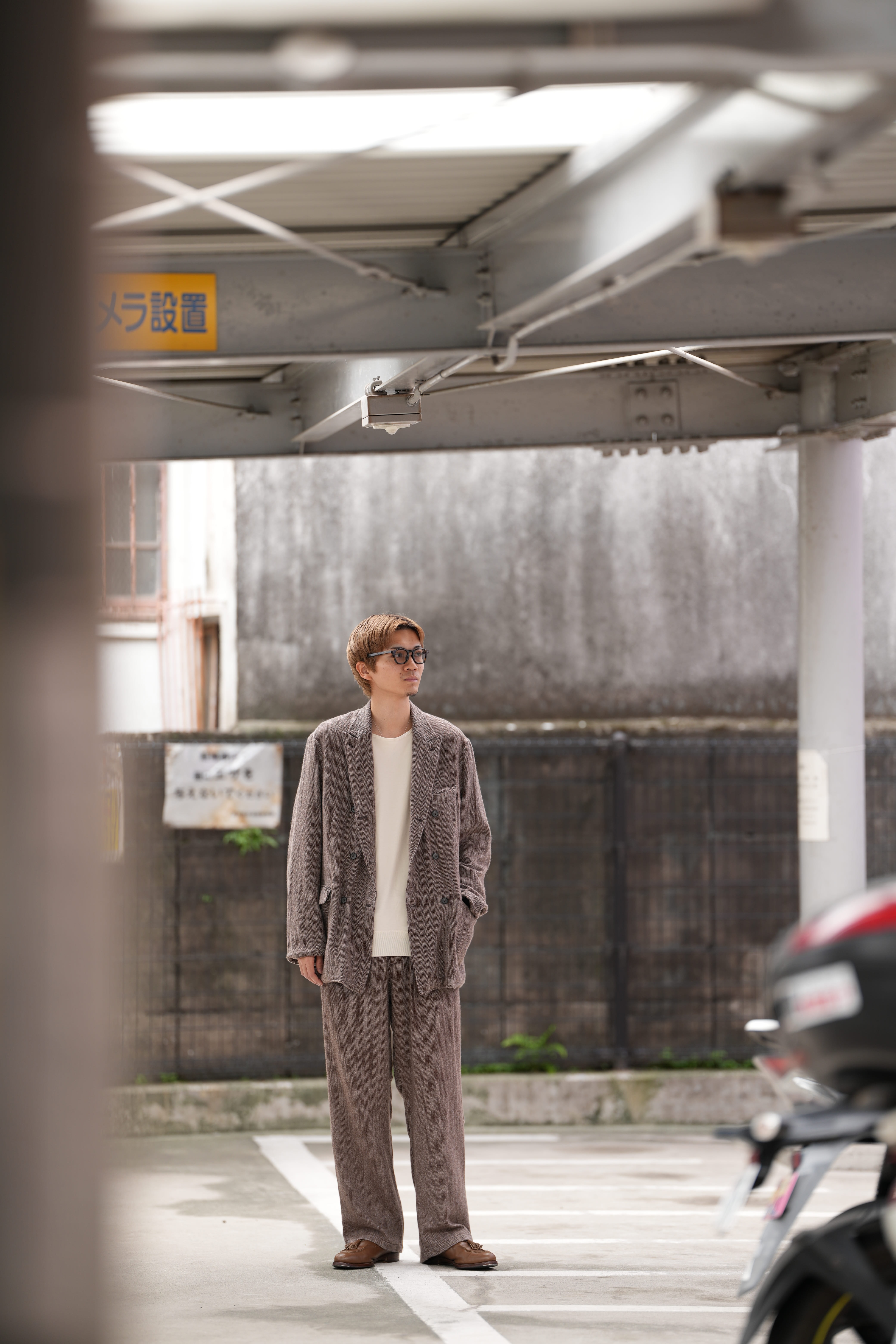 MAATEE&SONS (マーティーアンドサンズ) 25AW “ダブルGATHERED JK CASHSILKヘリンボーン”&”EASY PT” -BRWN- 【セットアップ販売】 ¥330,000-(intax) 着用サイズ2