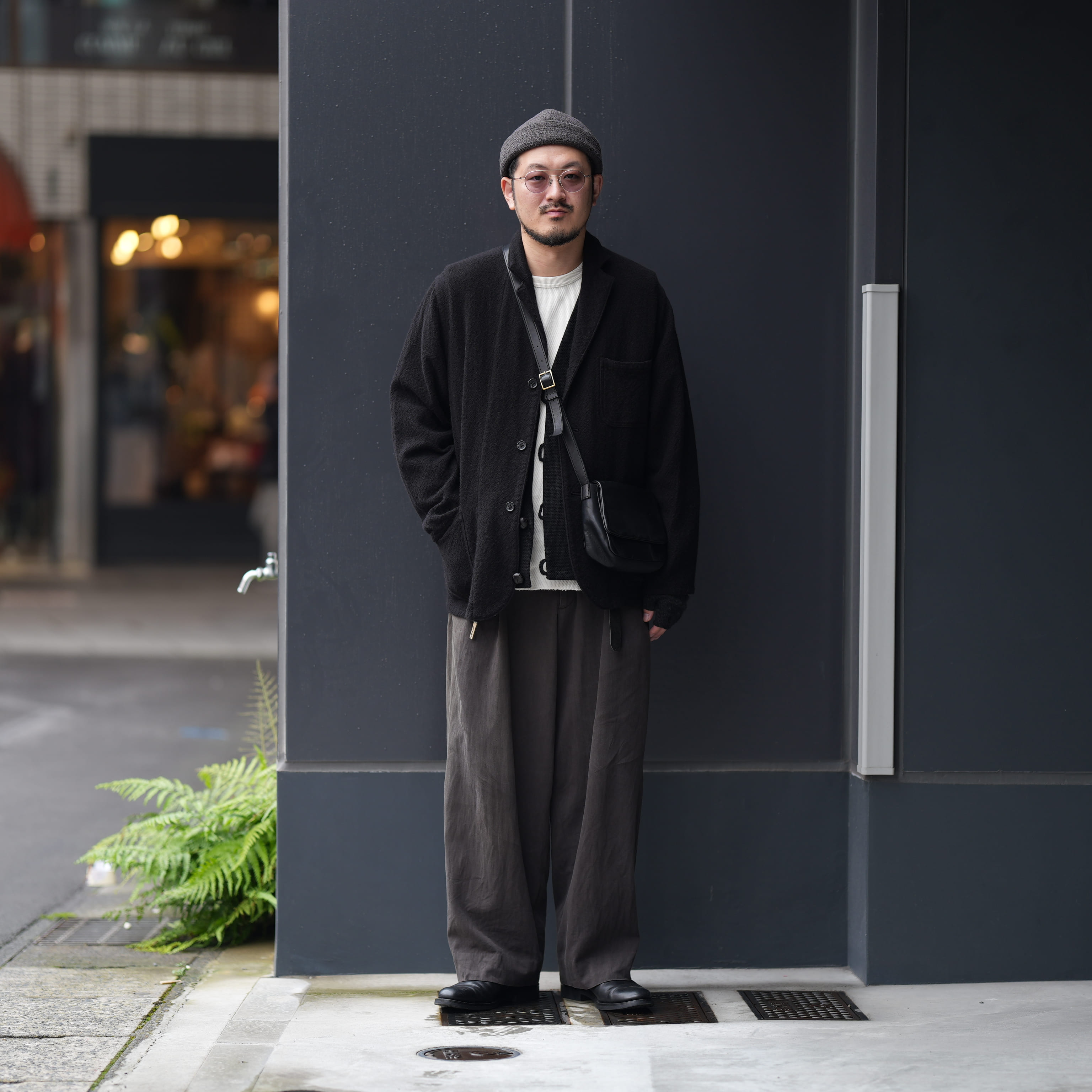 去年2色買いを試みるも顧客様に譲るという僕らしからぬ事をして買い逃した、HERILLのリジットカシミヤのブラック。やっぱり買って良かった。ここに関しては去年ナチュラルを散々着倒したので良さは分かっています。ジャケットを普段着ない人でもカバーオールを着る感覚で着てしまう。とにかく軽い、そして暖かい、洗えば洗うほどふわふわになる、、、これって着ない理由、まず買わない理由が見当たらない案件です。
