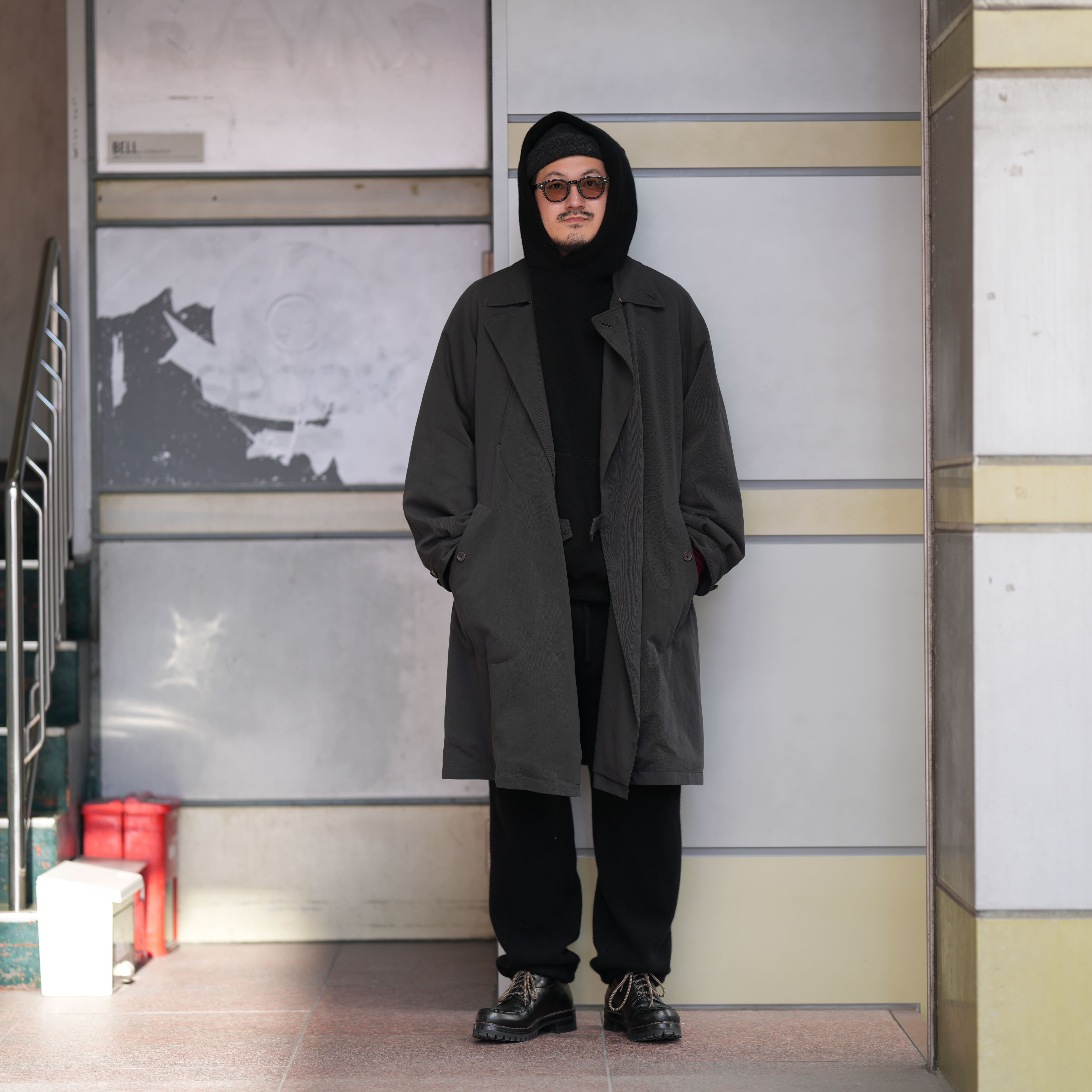 このセットアップはどうしてもカジュアル過ぎるので、アウターはコートを選びがちで今季2年ぶりに購入したコート、マーティーのオーバーコートをばさっと。