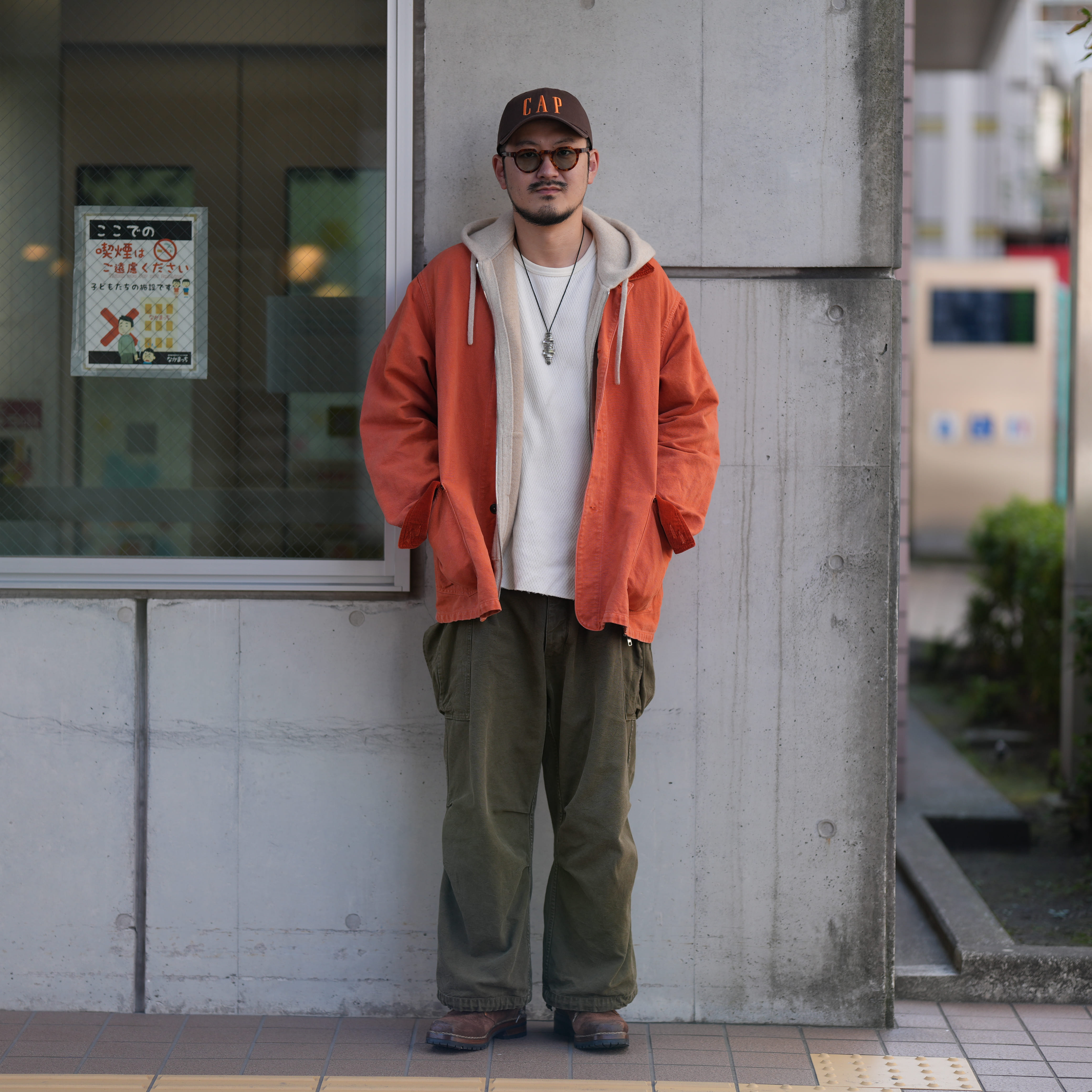 インナーにはゴールデンキャッキュのフルジップをかましてます。これがあるだけで一気に暖かい。キャプテンのジャケット自体には保温性はほぼ皆無なのでインナーでどう調整するかが大事となっていますが、この合わせなら真冬でも余裕です。なんだかんだでフルジップは全色制覇しましたが、こういった感じでインナーを見せて着ることが出来るゴールデンキャッシュはかなり重宝するなと思いましたね。