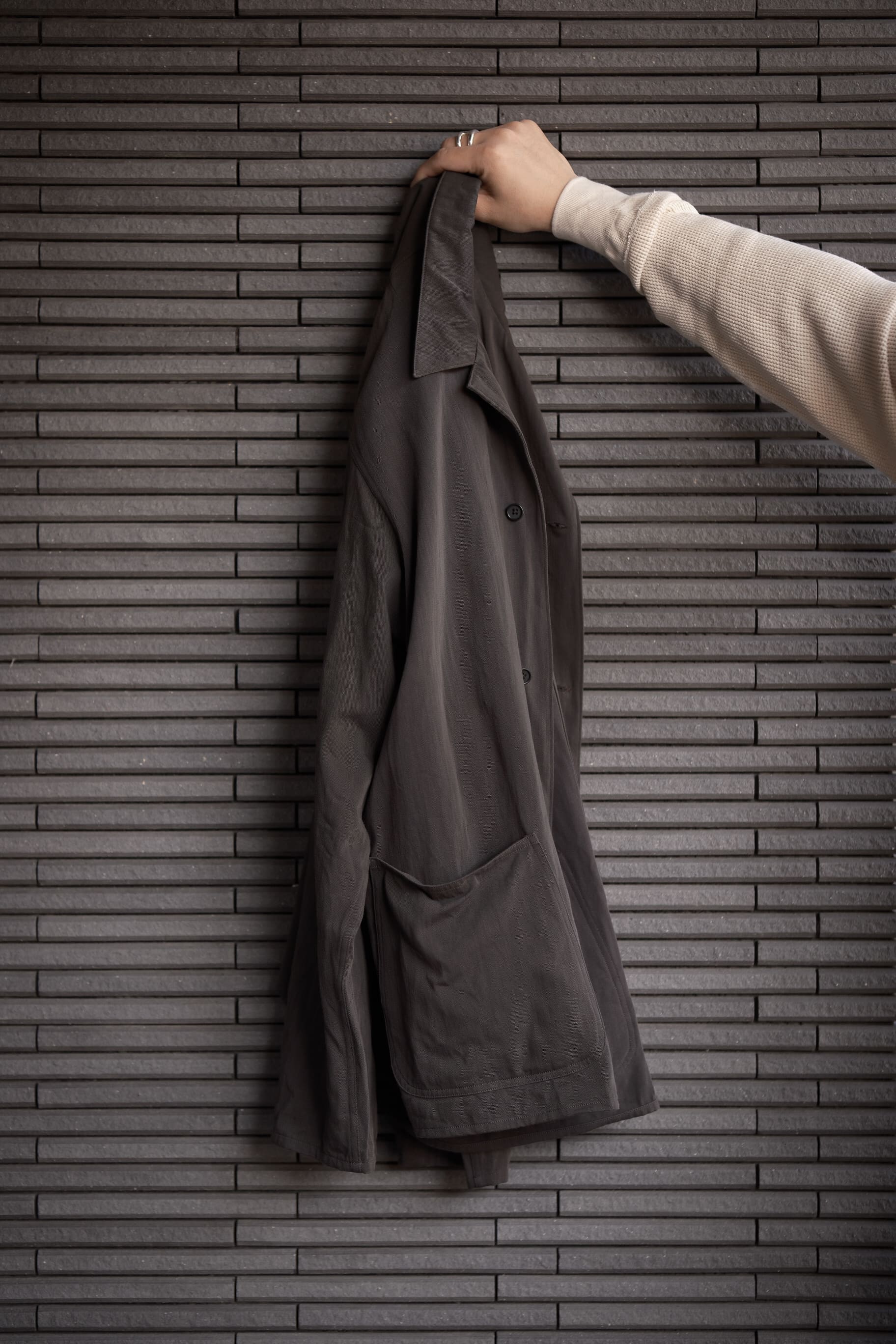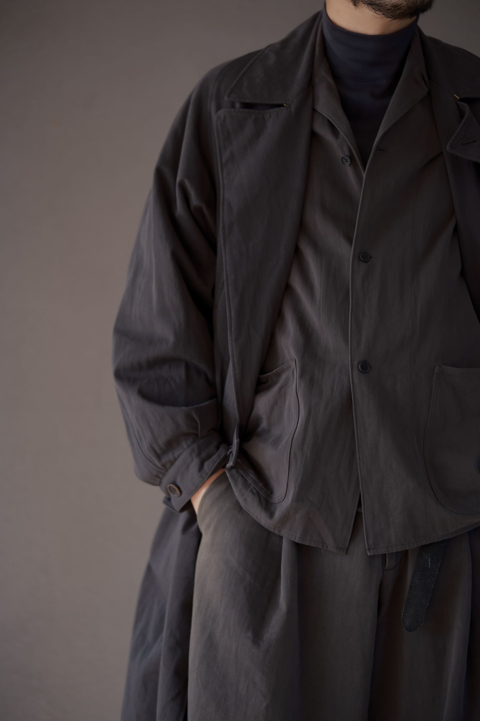 グレーシャンブレーと言えば初めて展開されたのが24AWシーズン、当時は永遠のスラックスやひょっとこセーターに注目が集まっていたので今ほどグレーシャンブレーに関しては注目を浴びていませんでした。僕はグレーシャンブレーを初めて見た時から、生地の風合いに惹かれていました。ただのコットンではない、そして絶対洗ったら良くなるだろうと言う未来が見えていました。