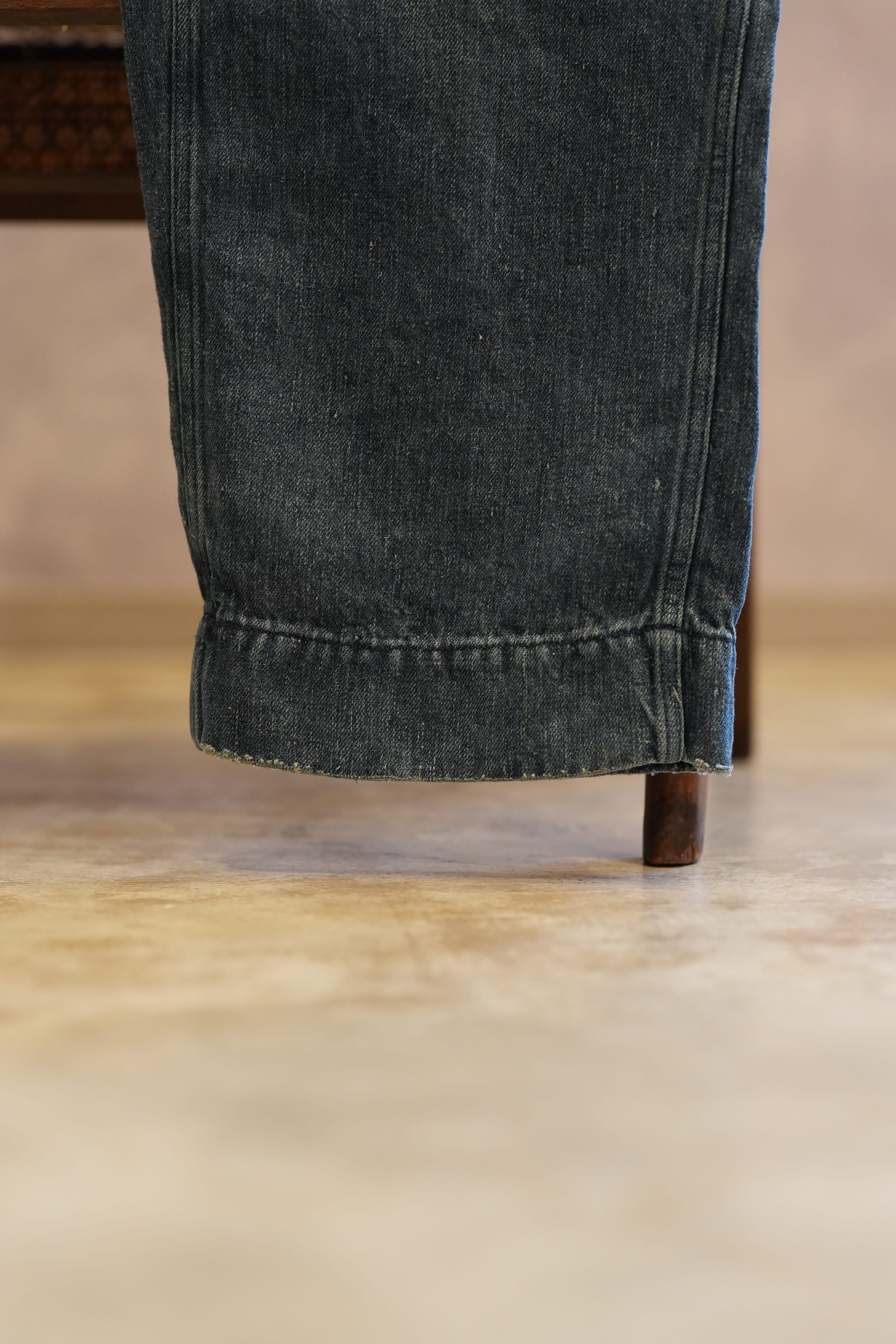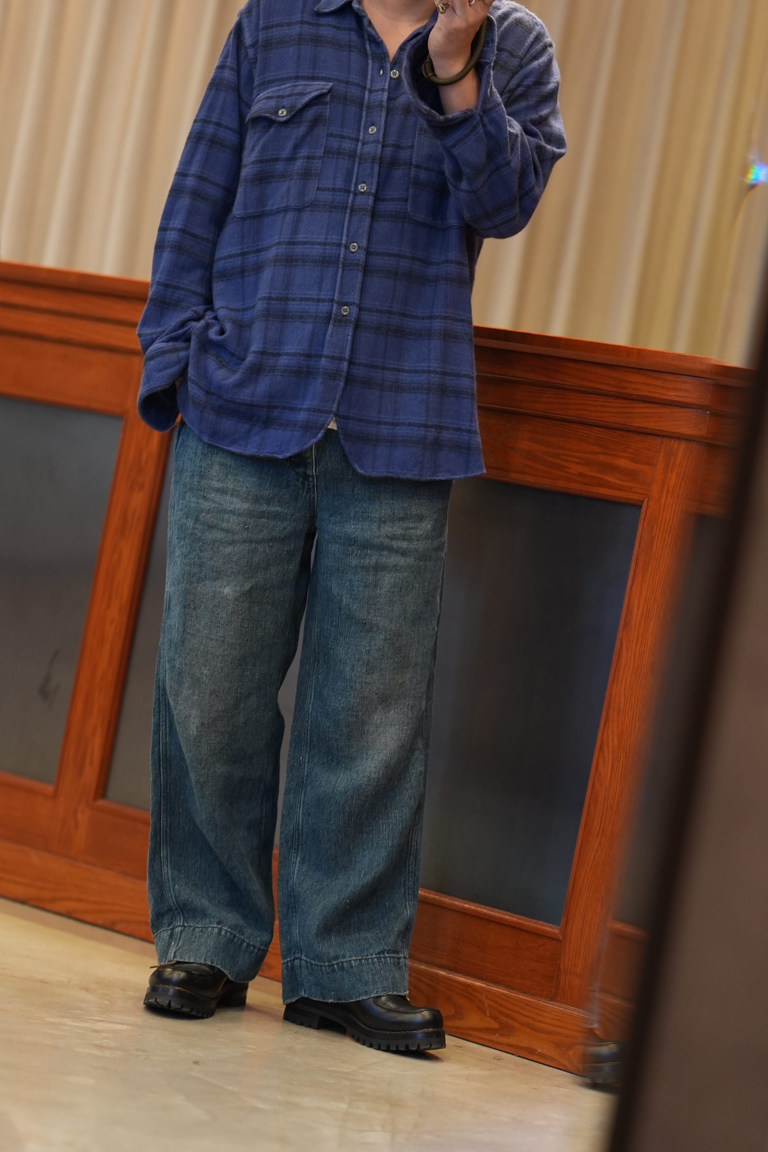 デニムの中ではかなりワイドなシルエットですが、ヘンプ特有の落ち感は健在なので変に太すぎるようには見えません。