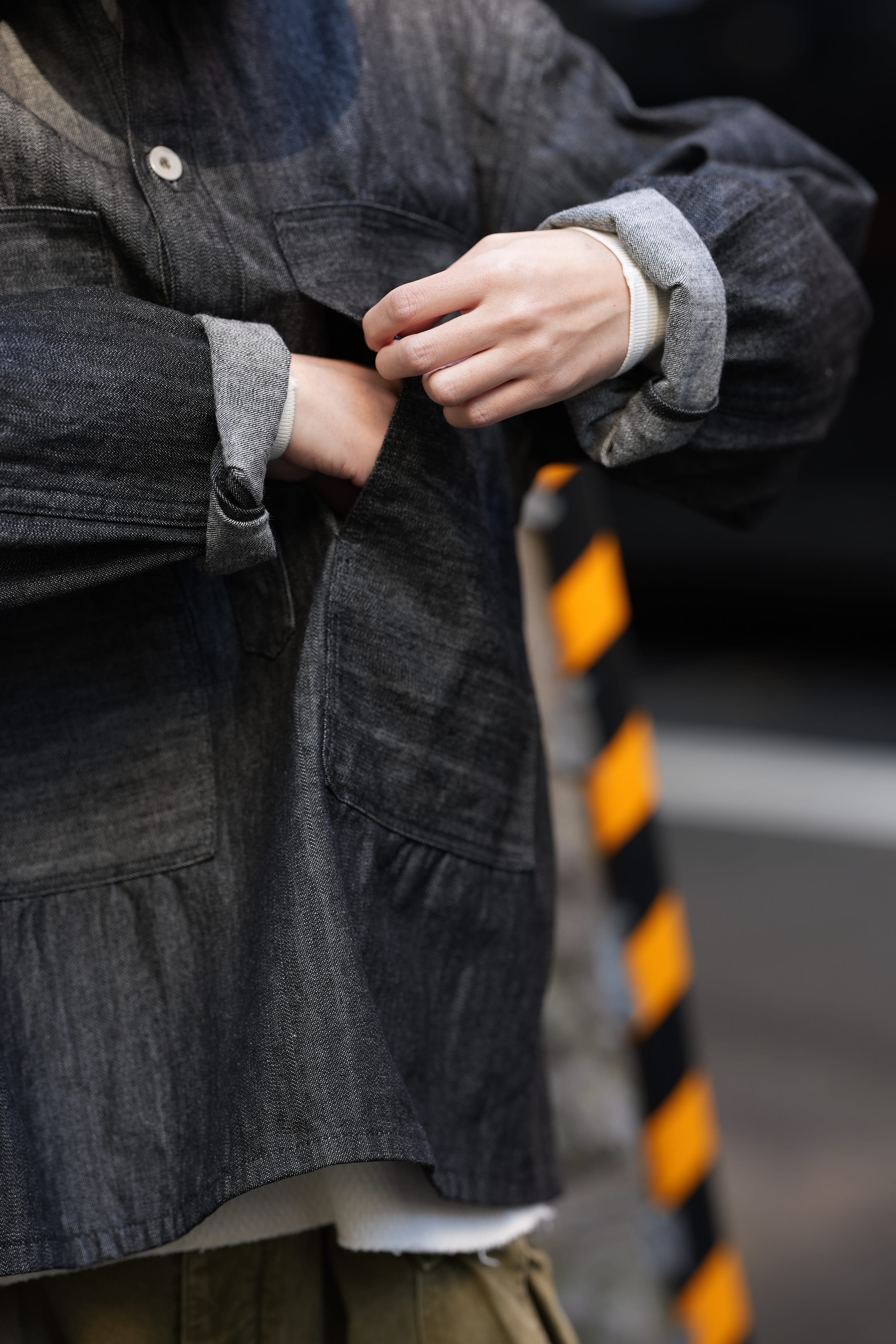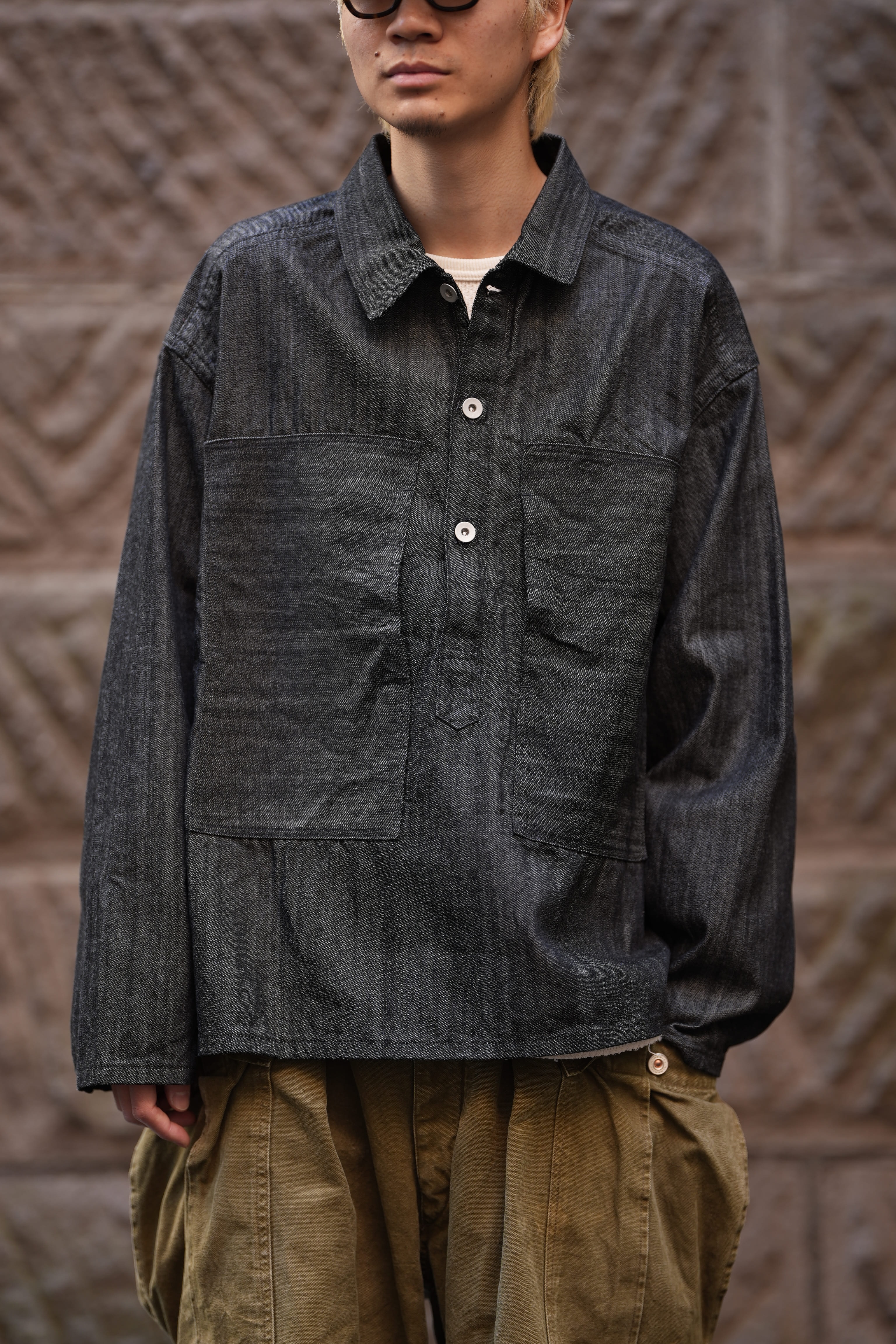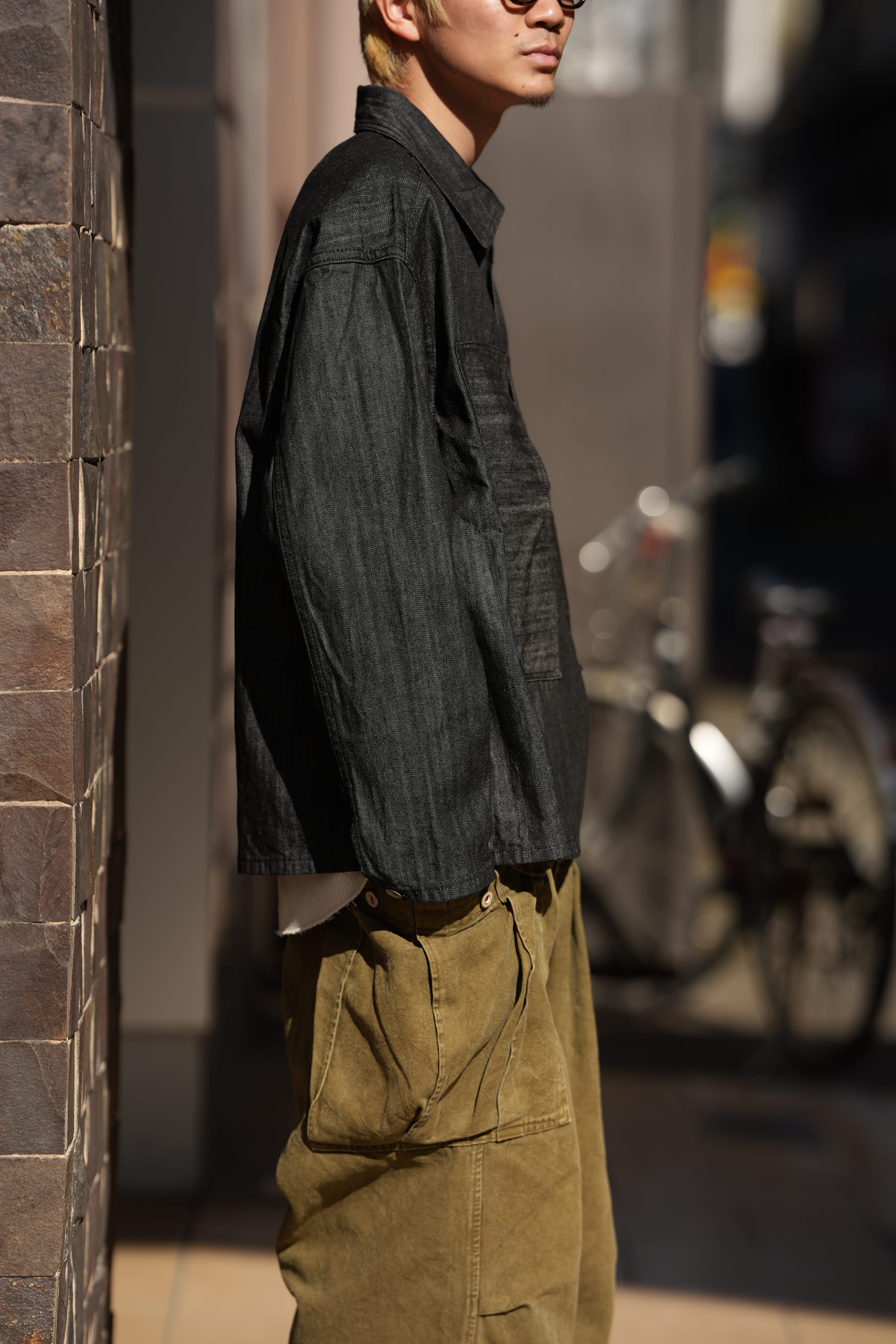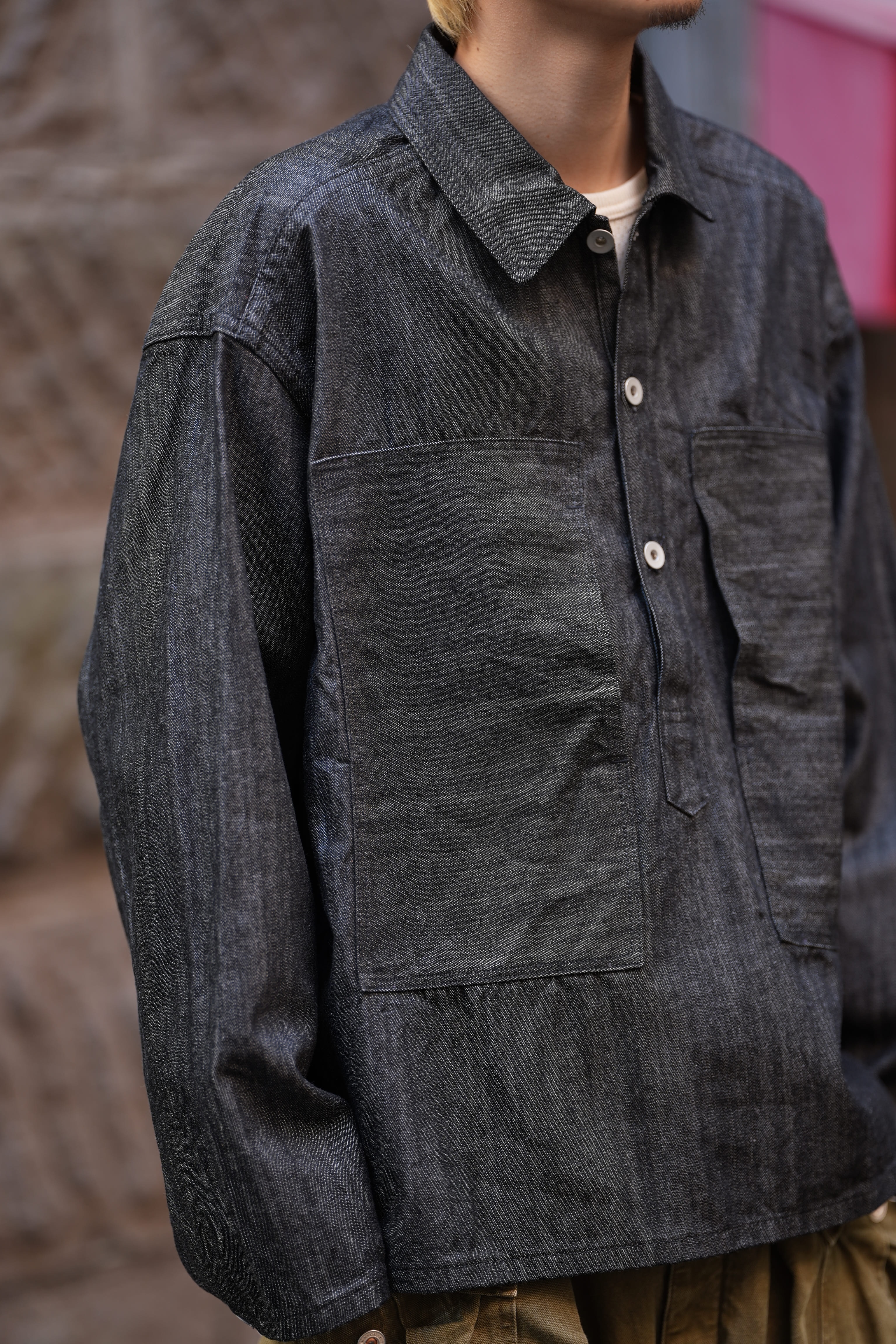 服好きなら一度は憧れたこのUSアーミーデニムプルオーバー、デザインとしては完全に完成しています。ポケットのデザイン、実用性もありデザインとしてもやり過ぎていない馴染みが良い、これをプルオーバーで仕上げてノーカラーではなく襟も付けたところが素晴らしい。ノーカラーにするだけで一気にファッション性が高くなるから、僕の求める物とは異なる。