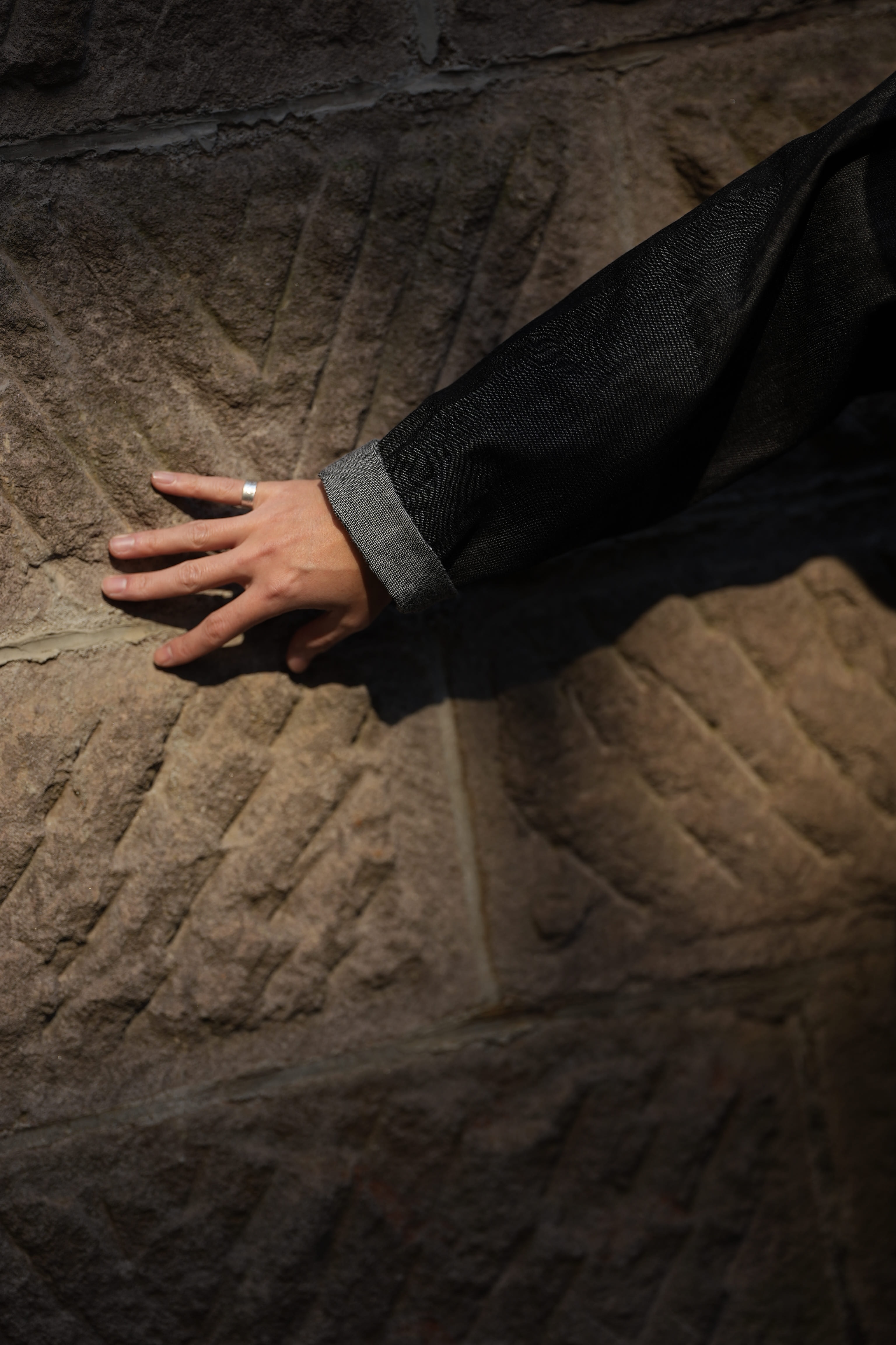 ブラックデニムで少し重くなりがちな雰囲気も袖を捲って少し色味の調整をする事でシーズン的にも夏まで視野に入れることができます。
