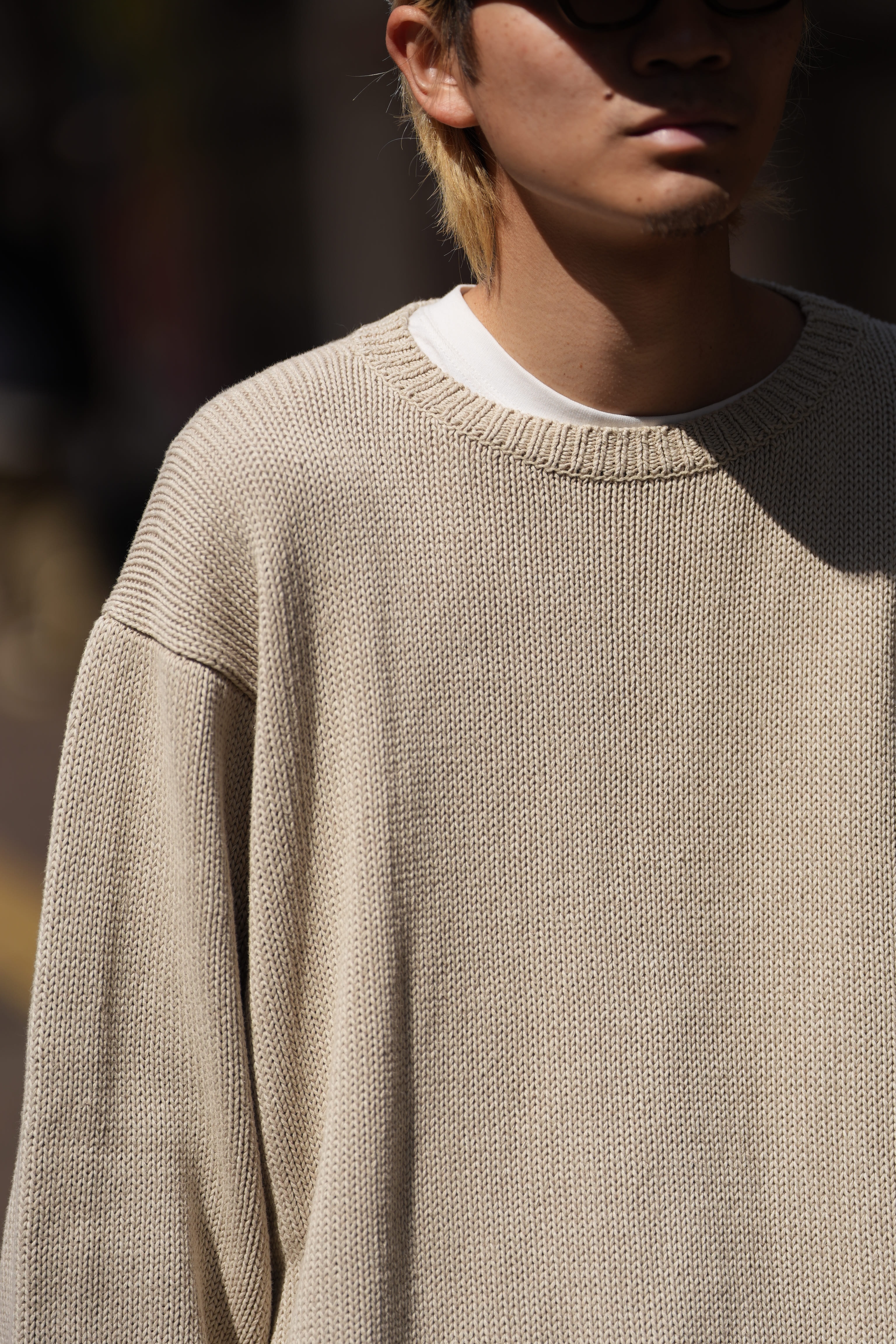 今の時期って何着ていますか?鹿児島だと日中は20度、朝晩で14度なのでウールやカシミヤはもう触れたくもない気温です。そうなると春夏で購入したライトアウターをカットソーの上から羽織るぐらいが1番適正だったりもしますが、もっと楽をしたいなと思う時はないですか?かと言ってスウェット1枚では良い感じにスタイリングをまとめるのが難しかったりもします、、、春夏でもライトなテンションのニットを展開するブランドは多いですが、僕的には正直着る時期が短いからかなりデザインが良かったり生地が良くないとまずオーダーしません。