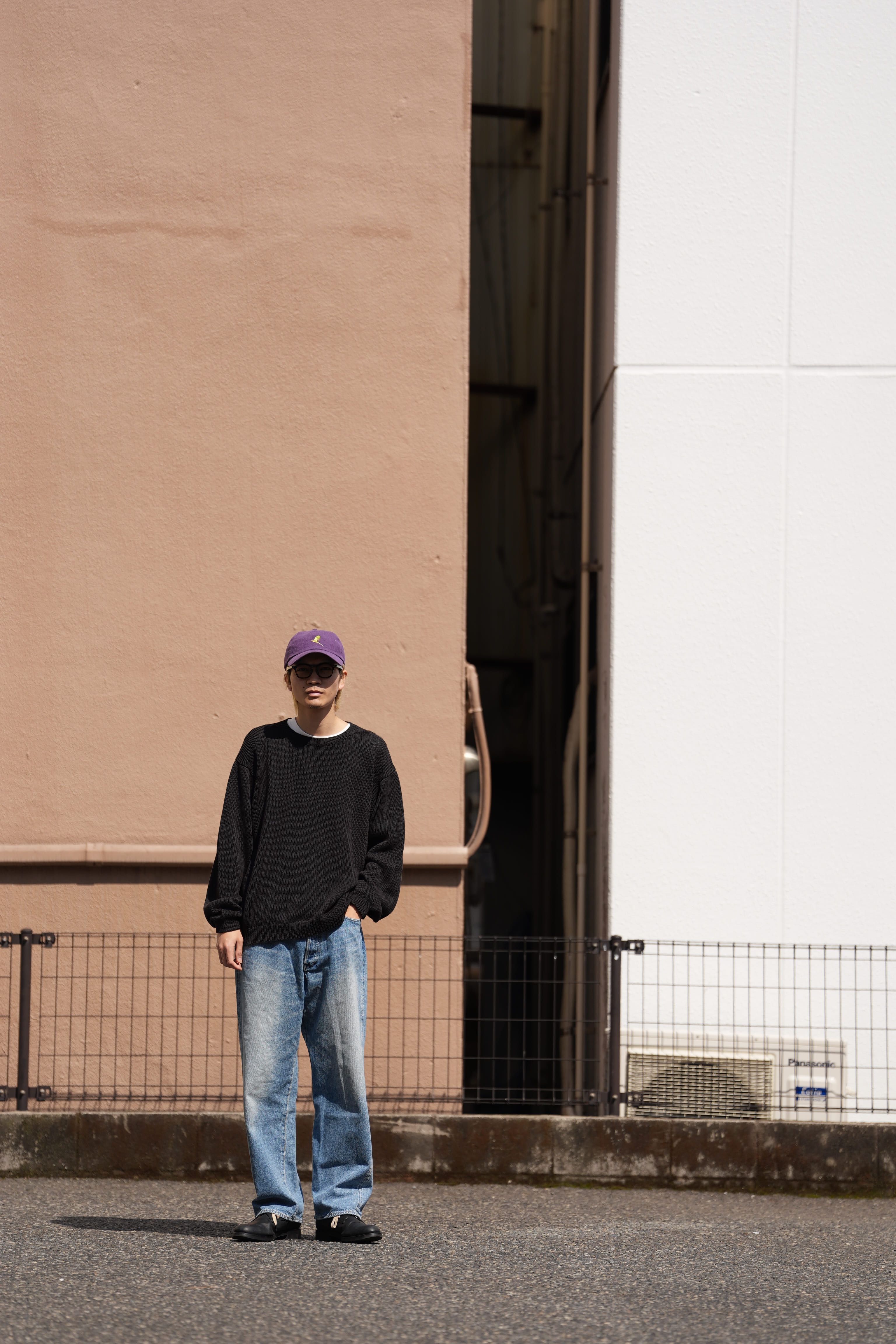 暑い夏の日のは袖をたくし上げて着ることも多かったですが、リブの強度も高く気づいたらスウェットのように着ていましたが、全くクタってくる様子はなくむしろ生地の風合いは最初の硬さが取れて落ち感が出始めています。最初は製品って感じのサイズ感ですが、着ていくと自分の身体に沿って落ちてくるので良いラインが出ますよ。