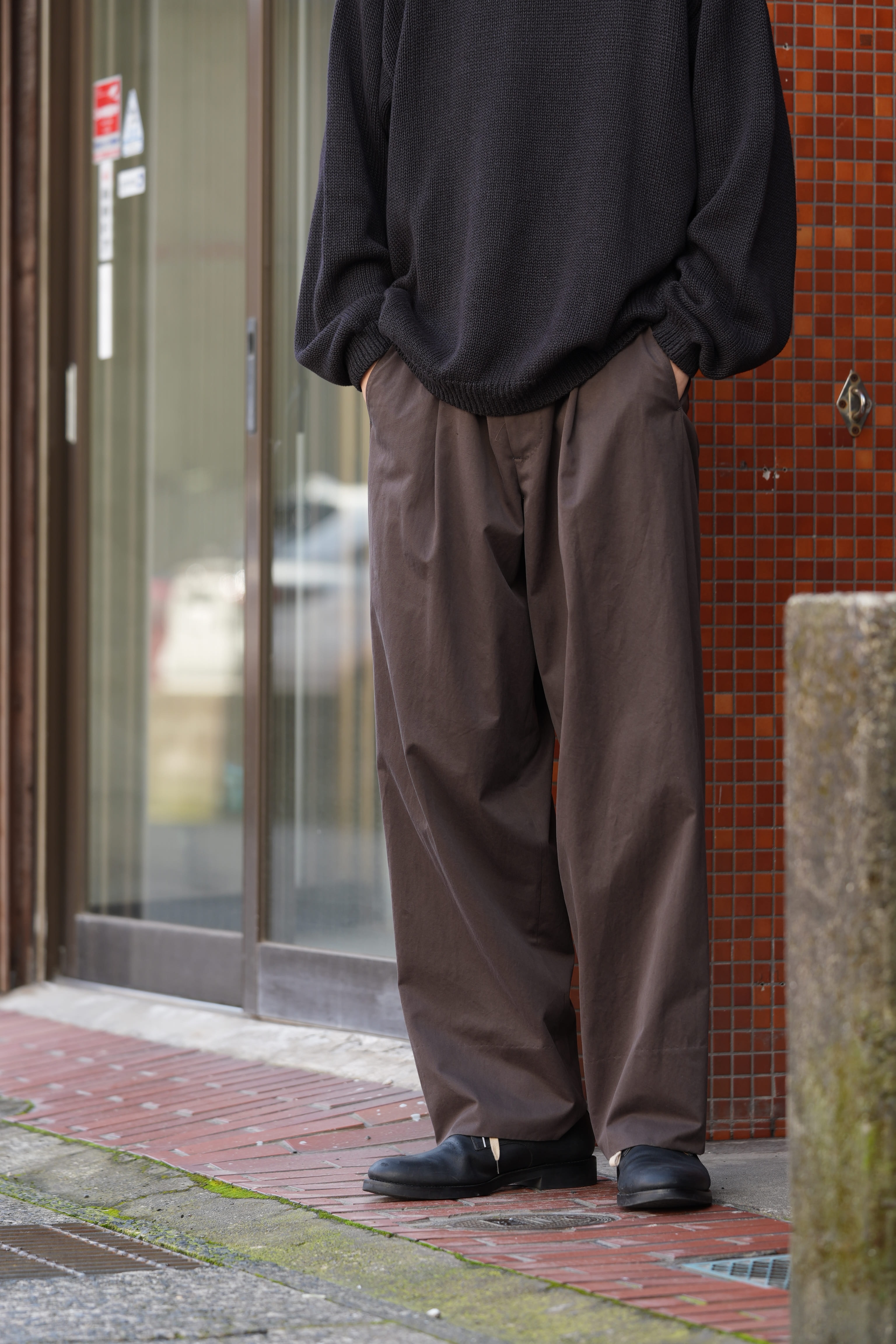 ニット:KAPTAIN SUNSHINE(キャプテンサンシャイン) 26SS “Cotton Washi Hand Frame P/O” -INK BLACK- ¥64,900-(intax) 着用サイズ3