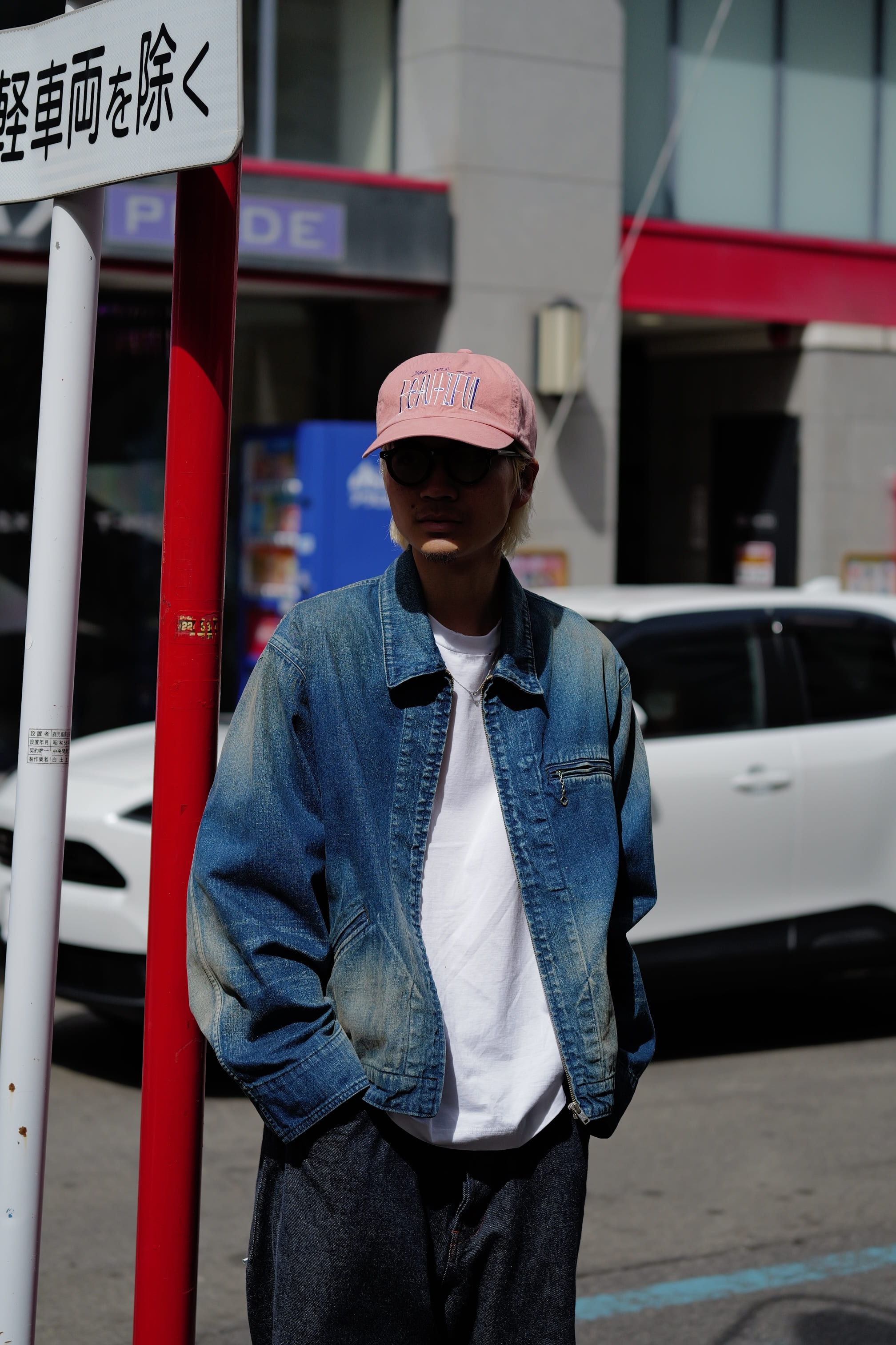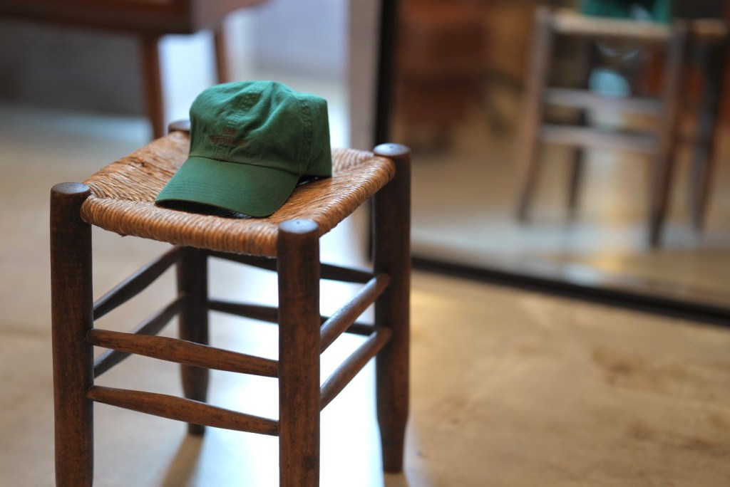 このスタイリングで帽子なしだとやはり味気ない、、、帽子が無地の黒でもなんか味気ない。さりげない刺繍にヴィンテージさながらに色を抜いたフェードグリーンがやり過ぎない程度にアクセントになってくれます。