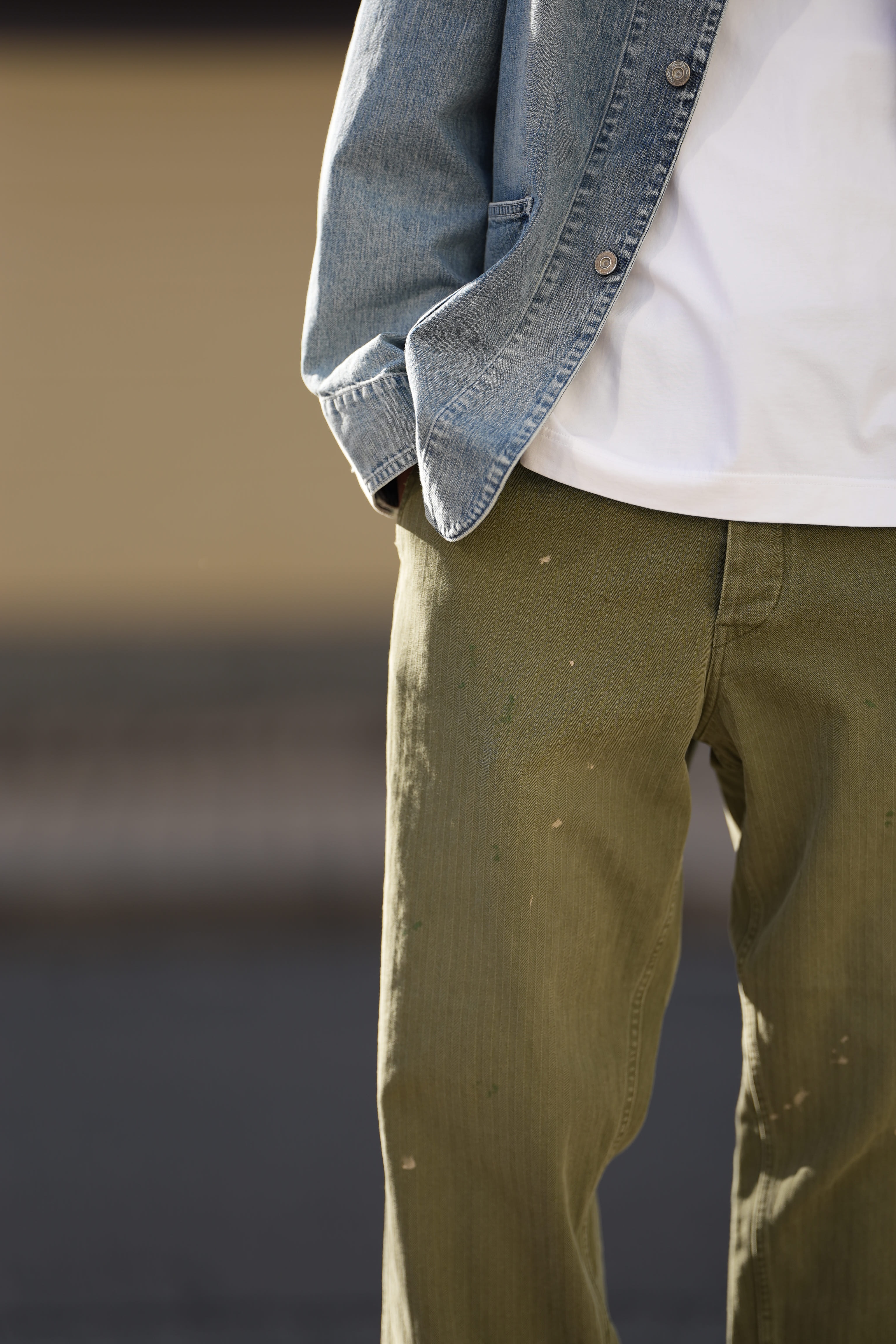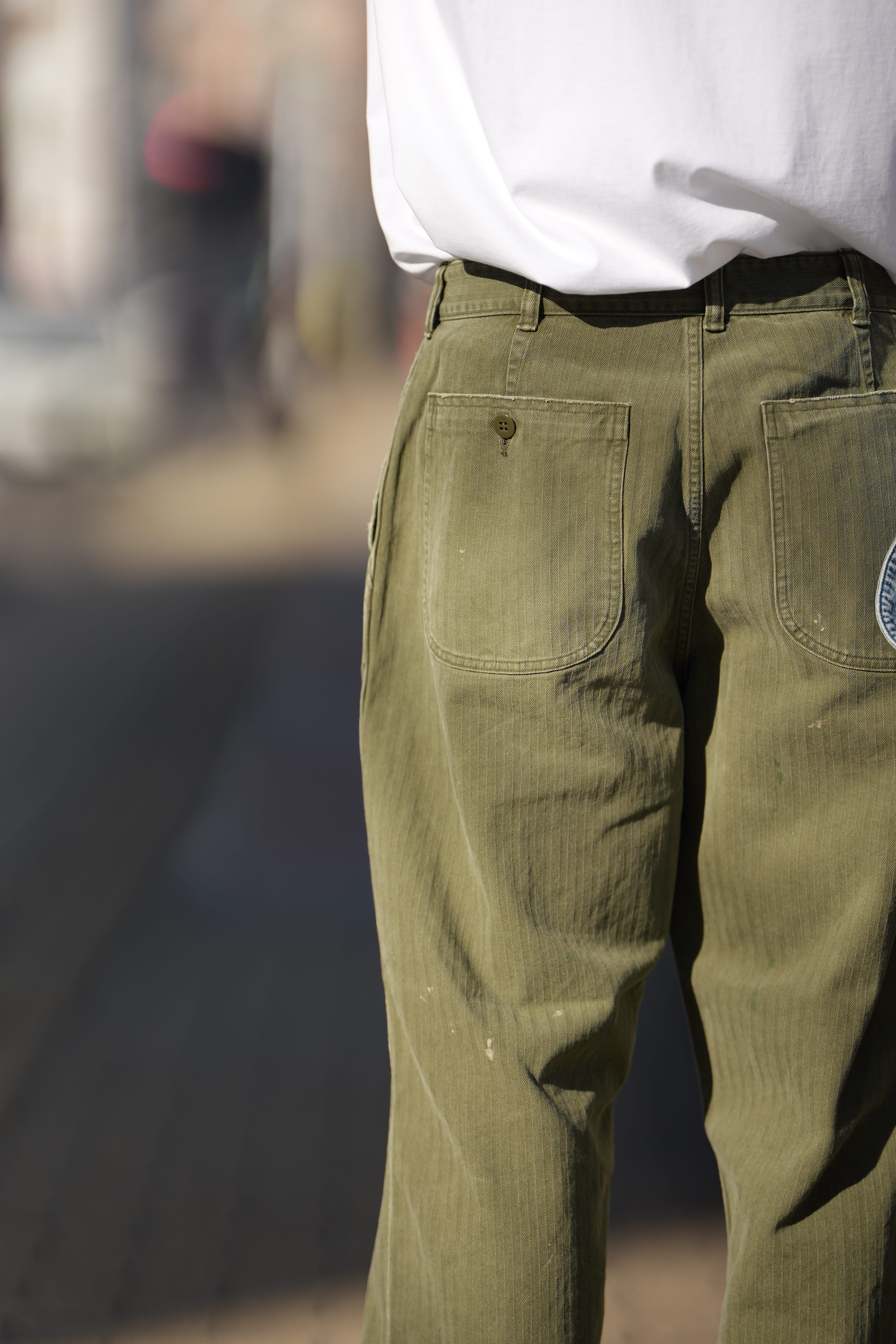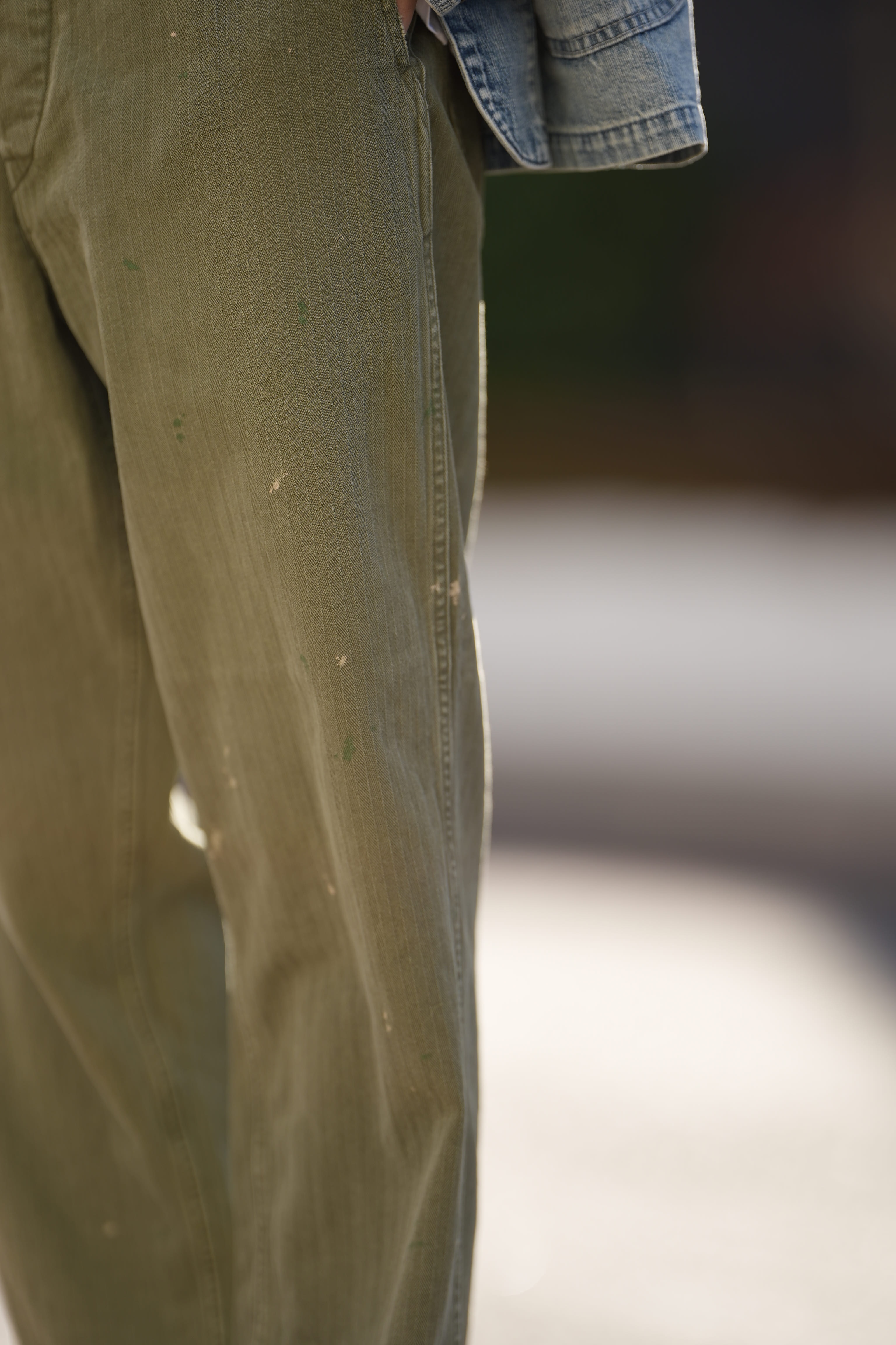 デニムでは501、チノパンではUS ARMY、軍パンならM65みたいなパッと思いつく王道的なアイテムが存在しますが、これもまたその王道の中の一つでUSMCのヘリンボーンパンツ。多くのブランドがリファレンスとしブランドの個性を詰め込んで作っていますが、僕はHERILLでしかオーダーしていません。僕の中ではHERILLがトップでした。