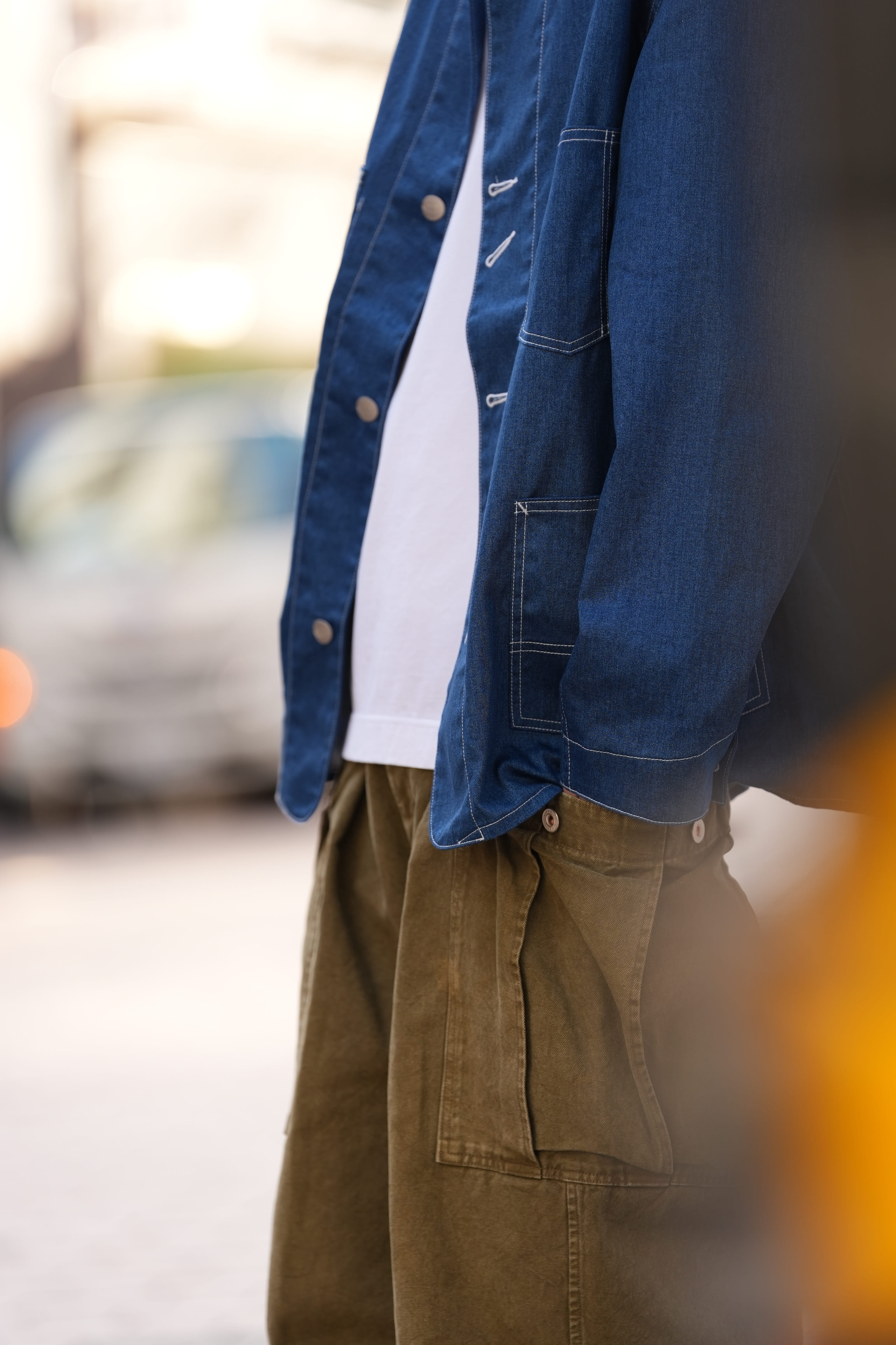 ただデニムをプリントしたっていう部分だけを聞くとチープな印象が先行しそうですが、考え方によってはそんなデニムないよなって、リアルデニムにはない味がこのファウンダのカバーオールにはあります。