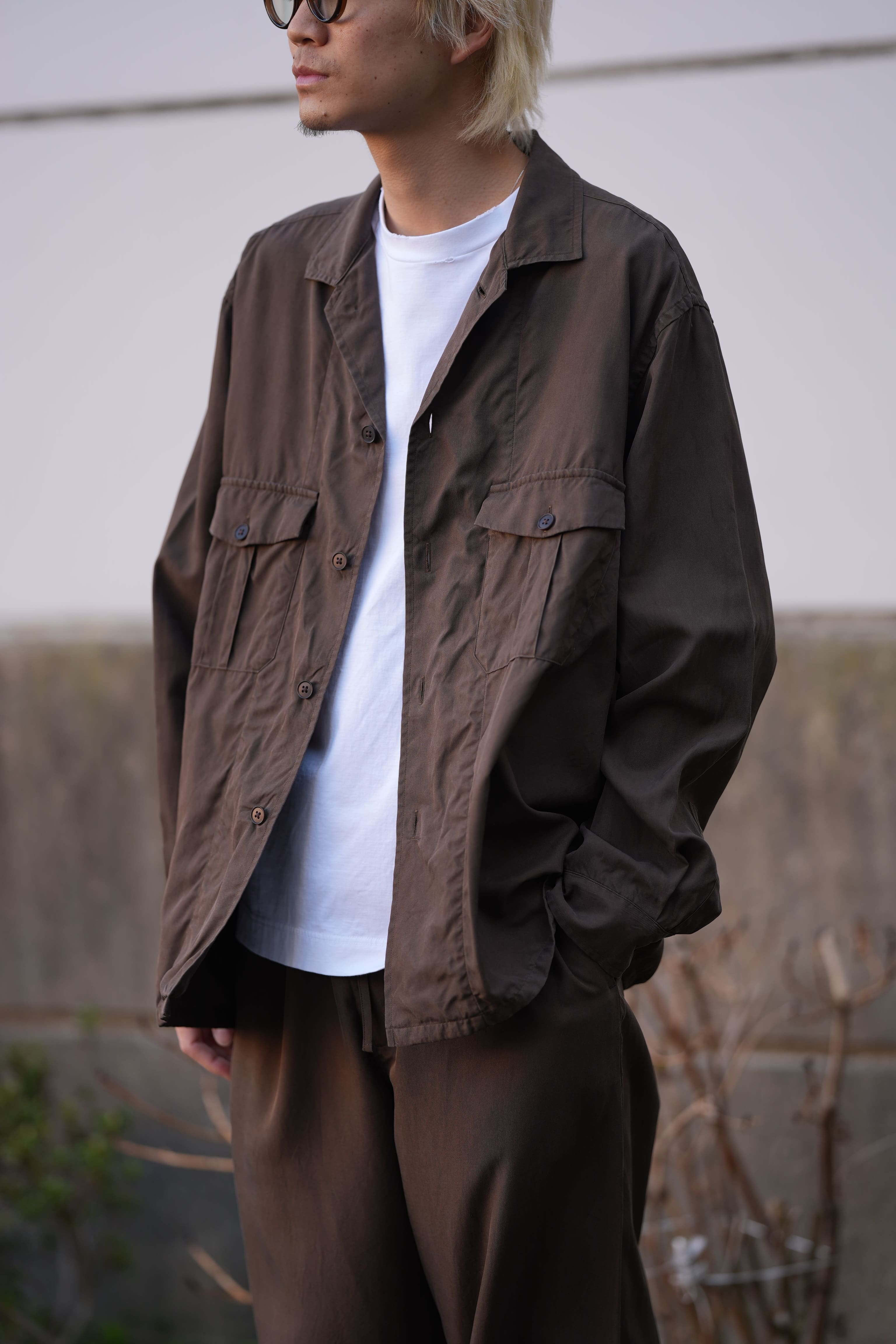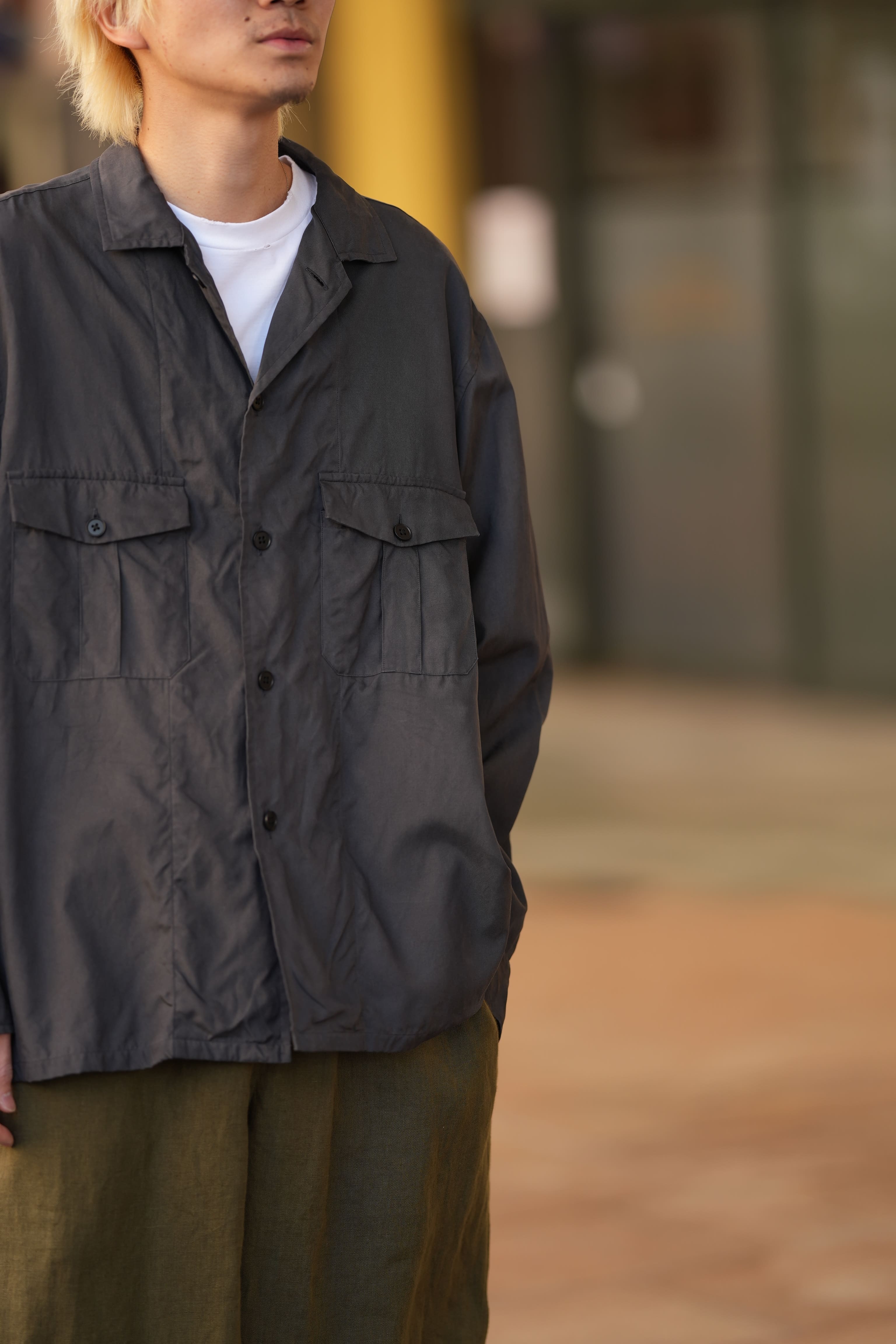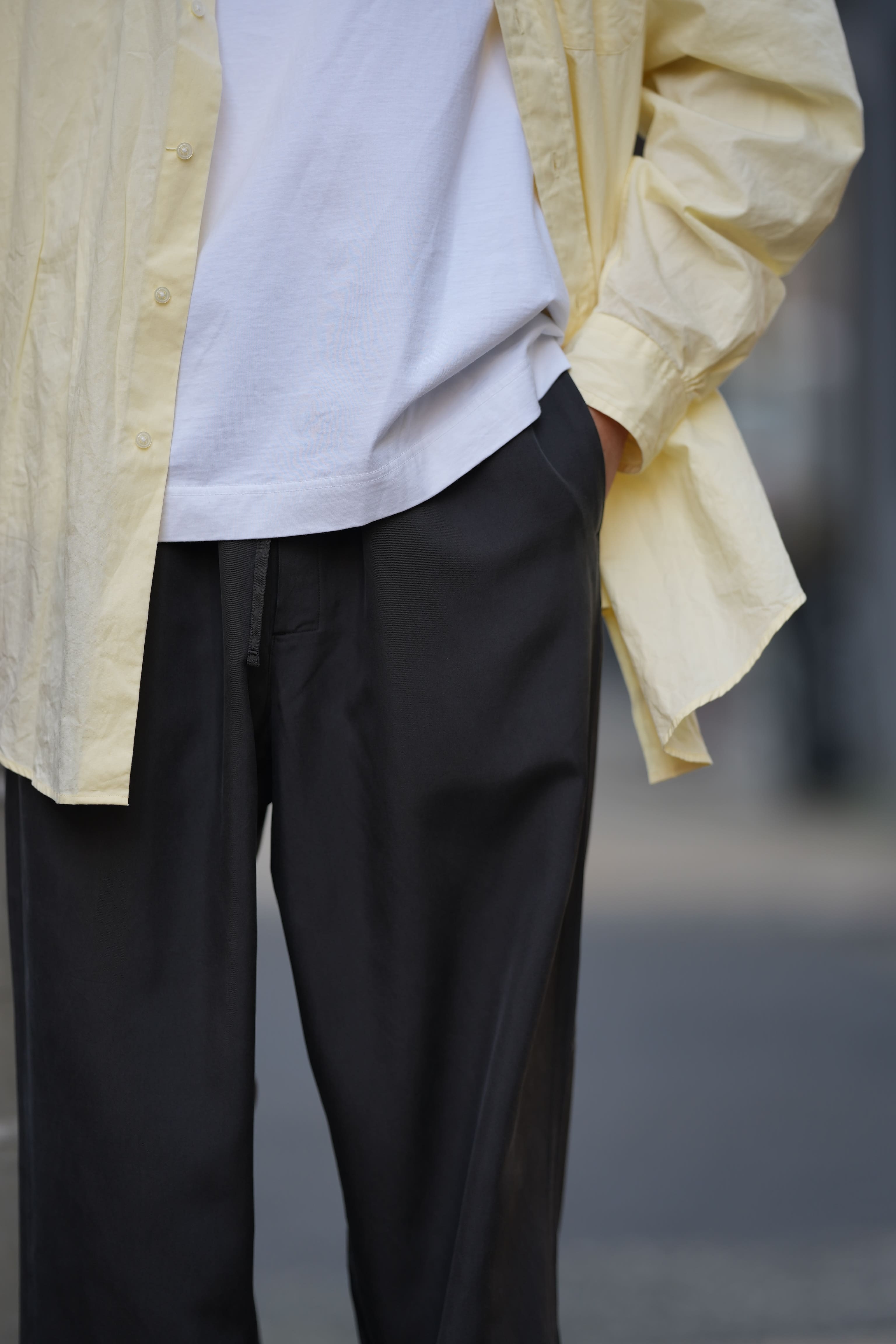 シャツ:FOUNDOUR (ファウンダ) 26SS “COTTON BROAD REGULAR COLLAR SHIRT” -YELLOW- ¥29,700-(intax) 着用サイズ1