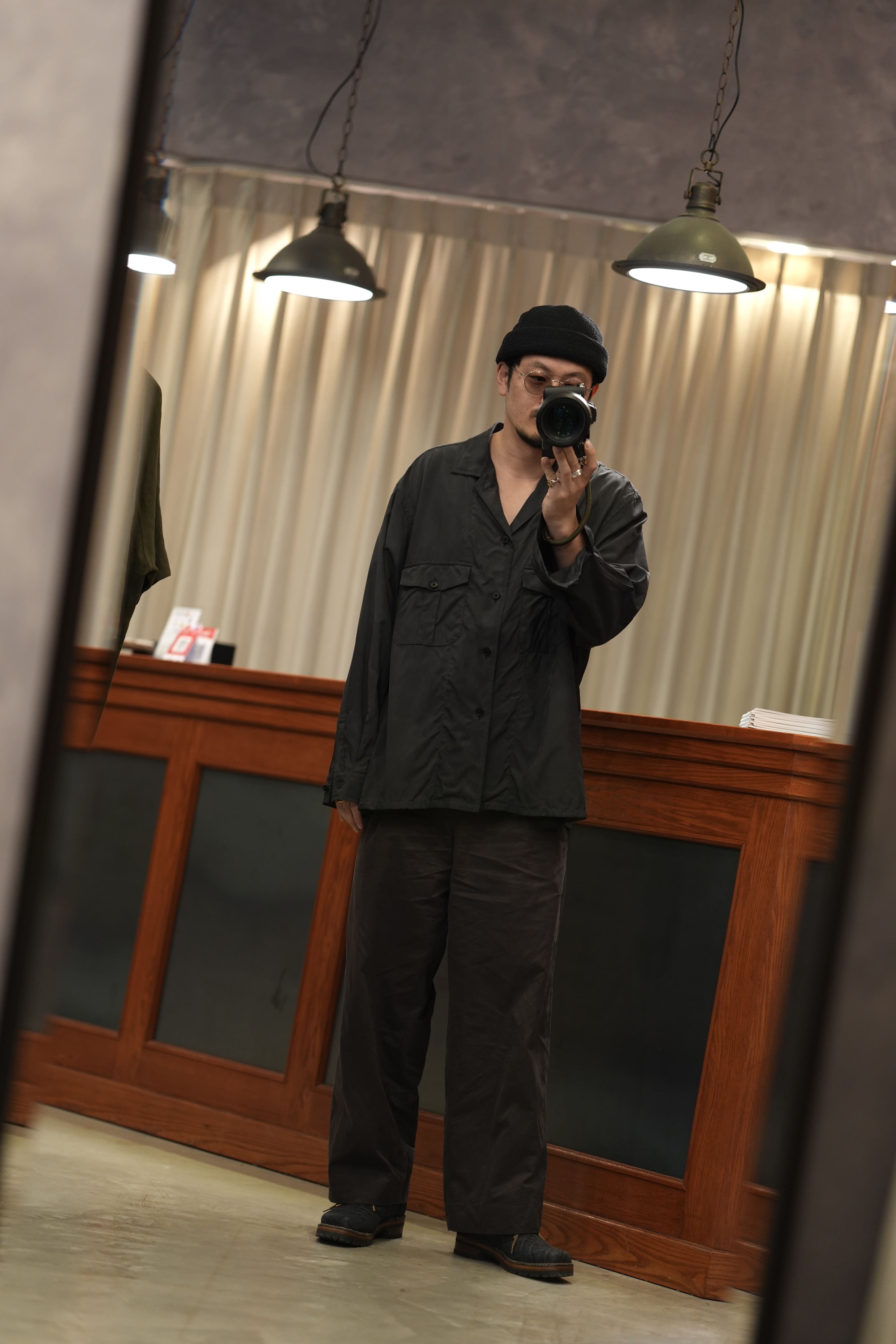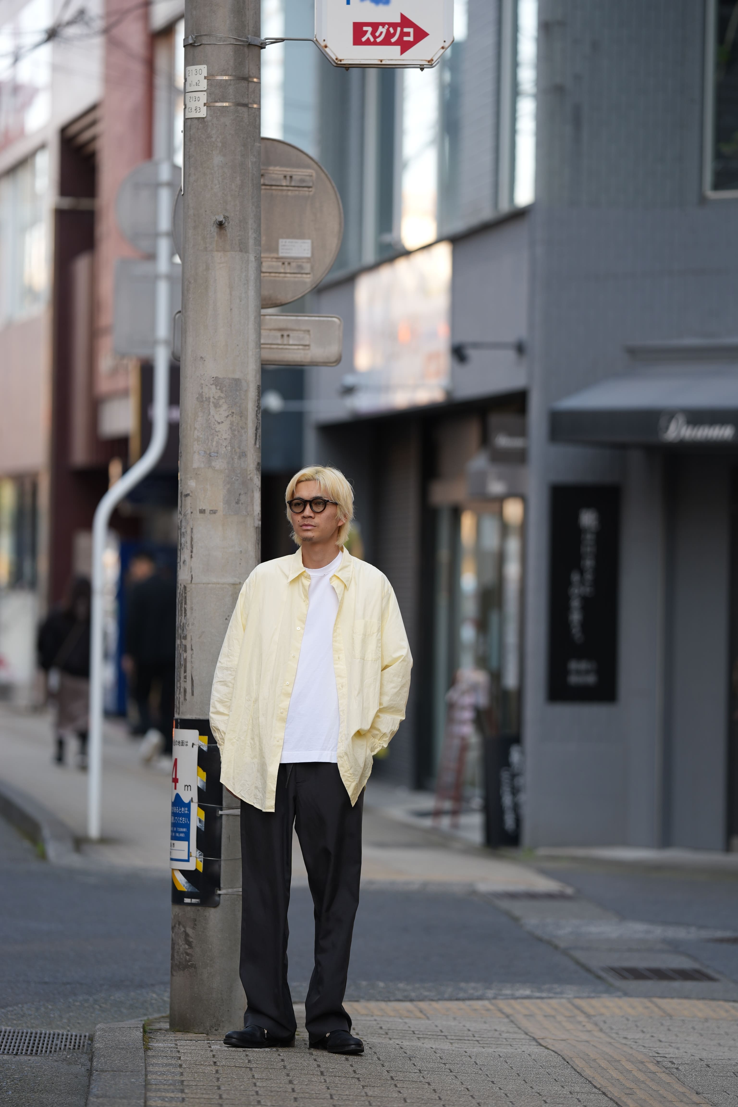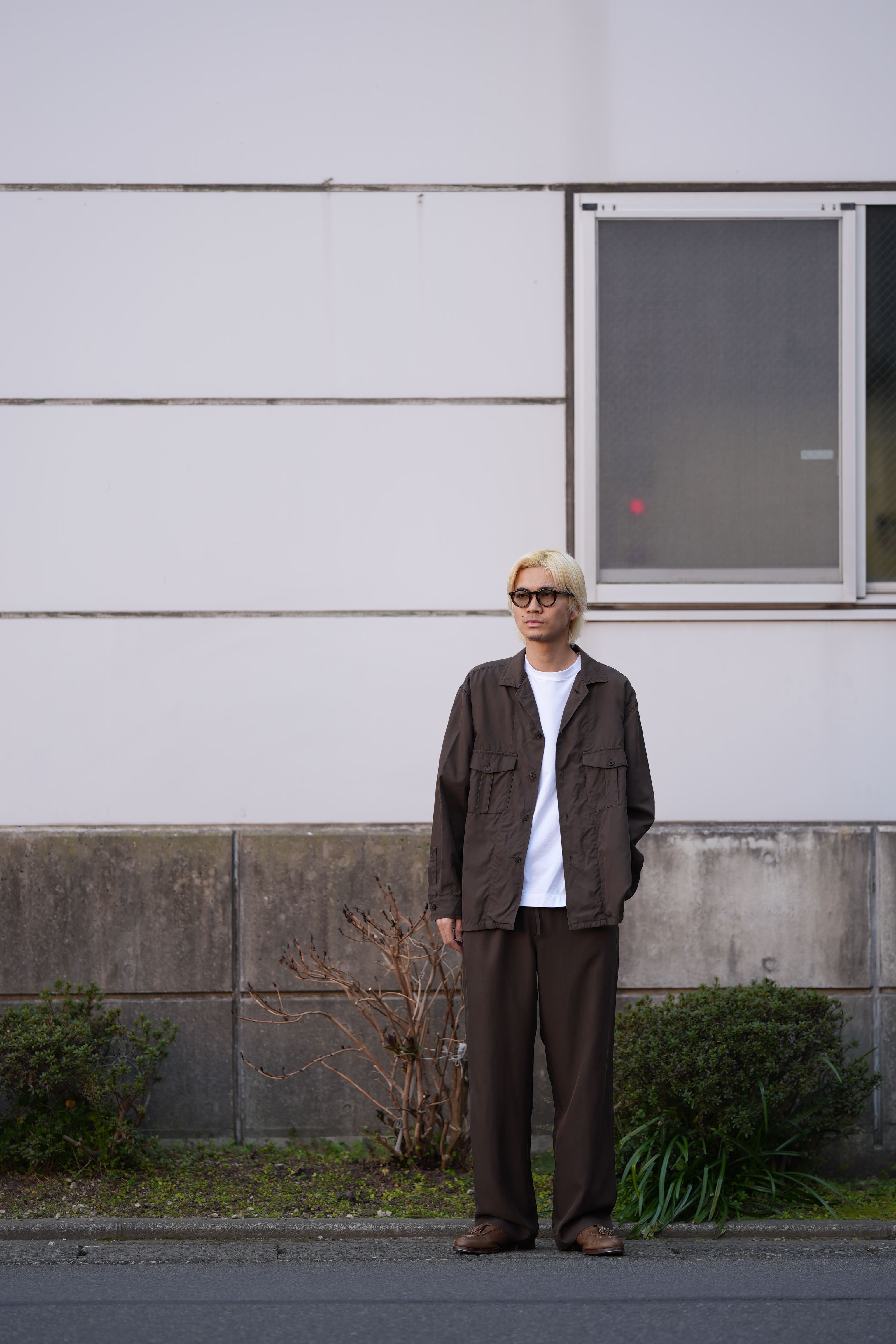 シャツ:FOUNDOUR (ファウンダ) 26SS “COTTON BROAD REGULAR COLLAR SHIRT” -YELLOW- ¥29,700-(intax) 着用サイズ1