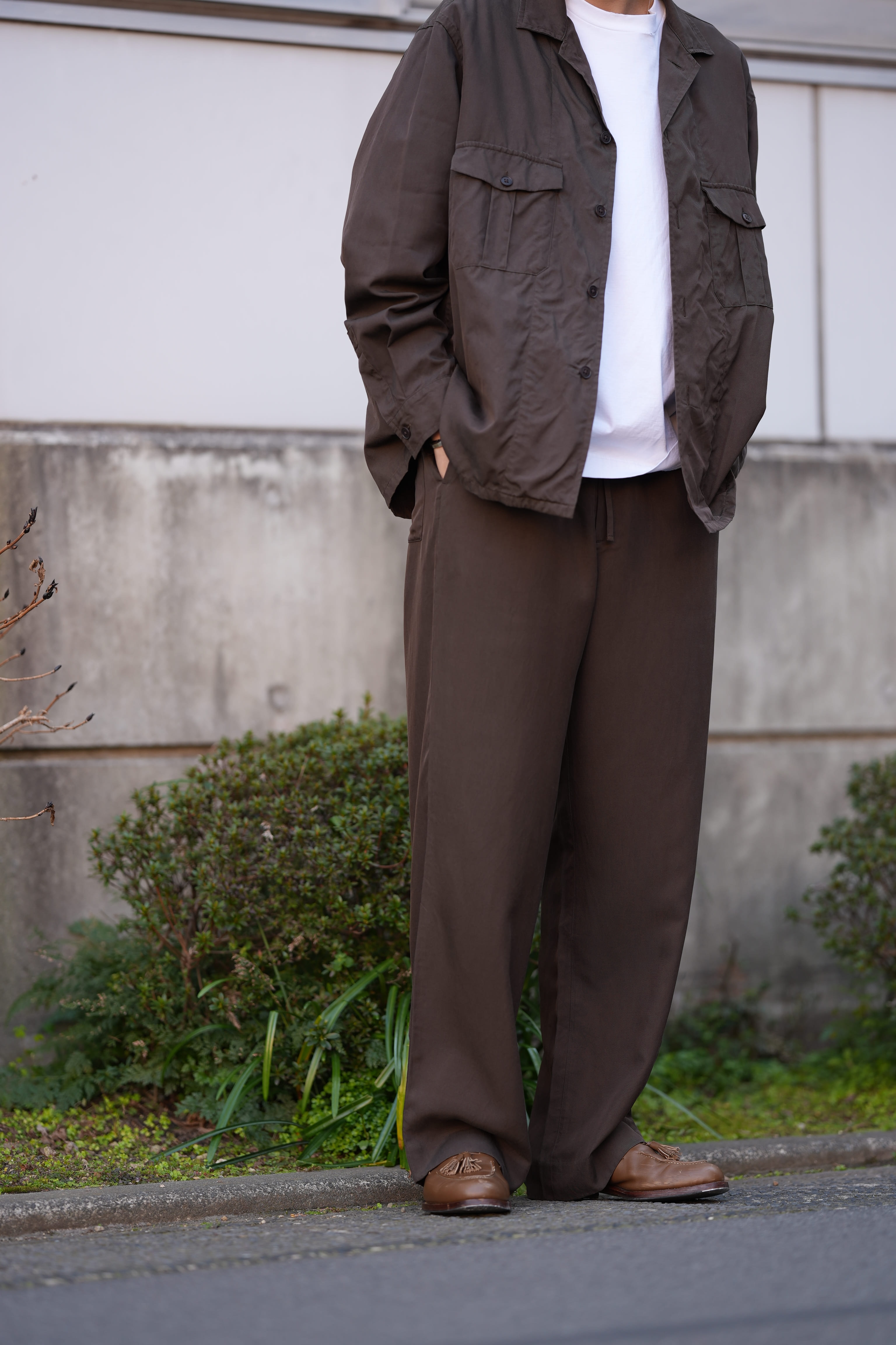 ラストデリバリーでこのシルク素材で半袖スキッパーが入荷しますが、そのスキッパーとこのパンツとのセットアップ、、、、もう最高にカッコいいですから。