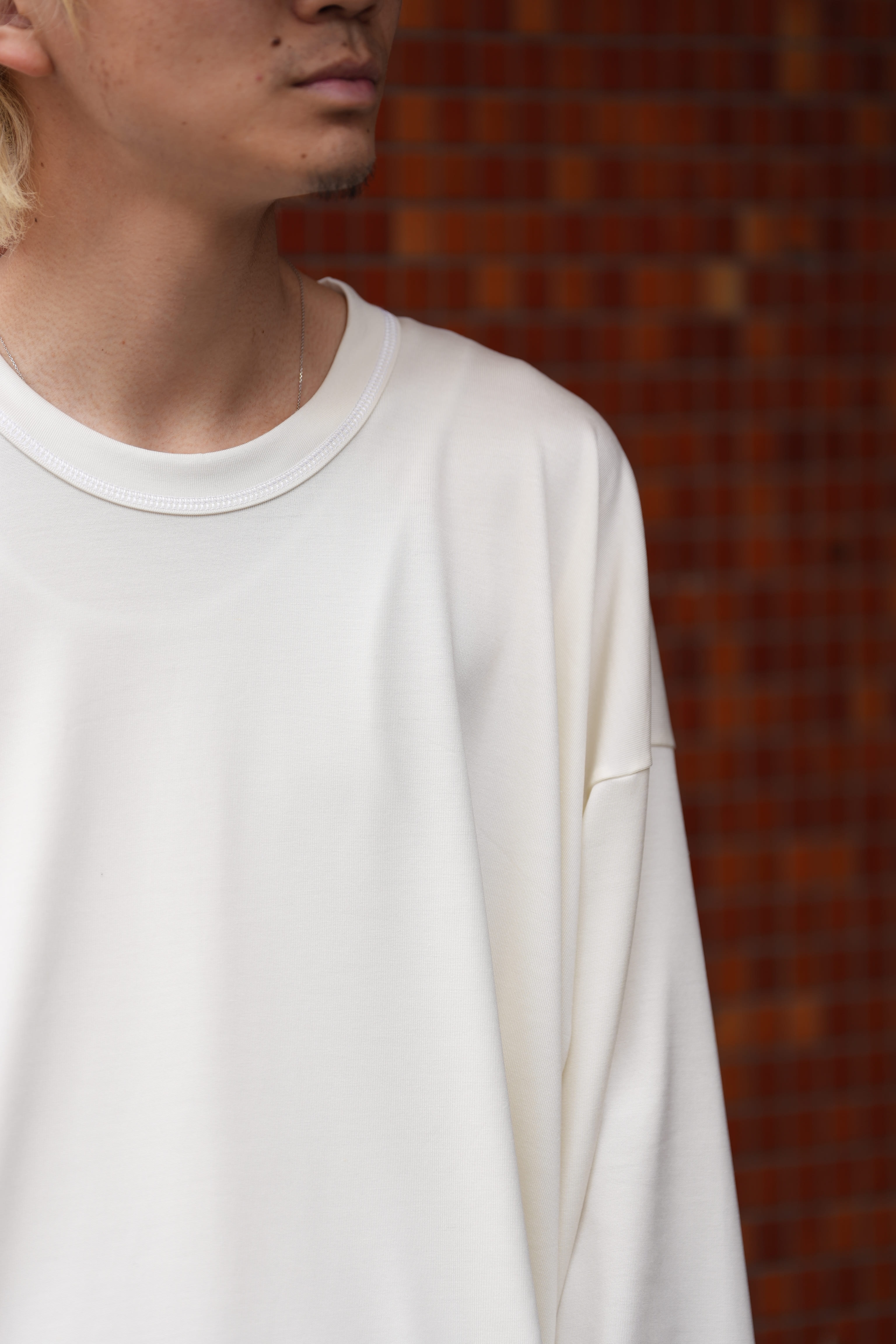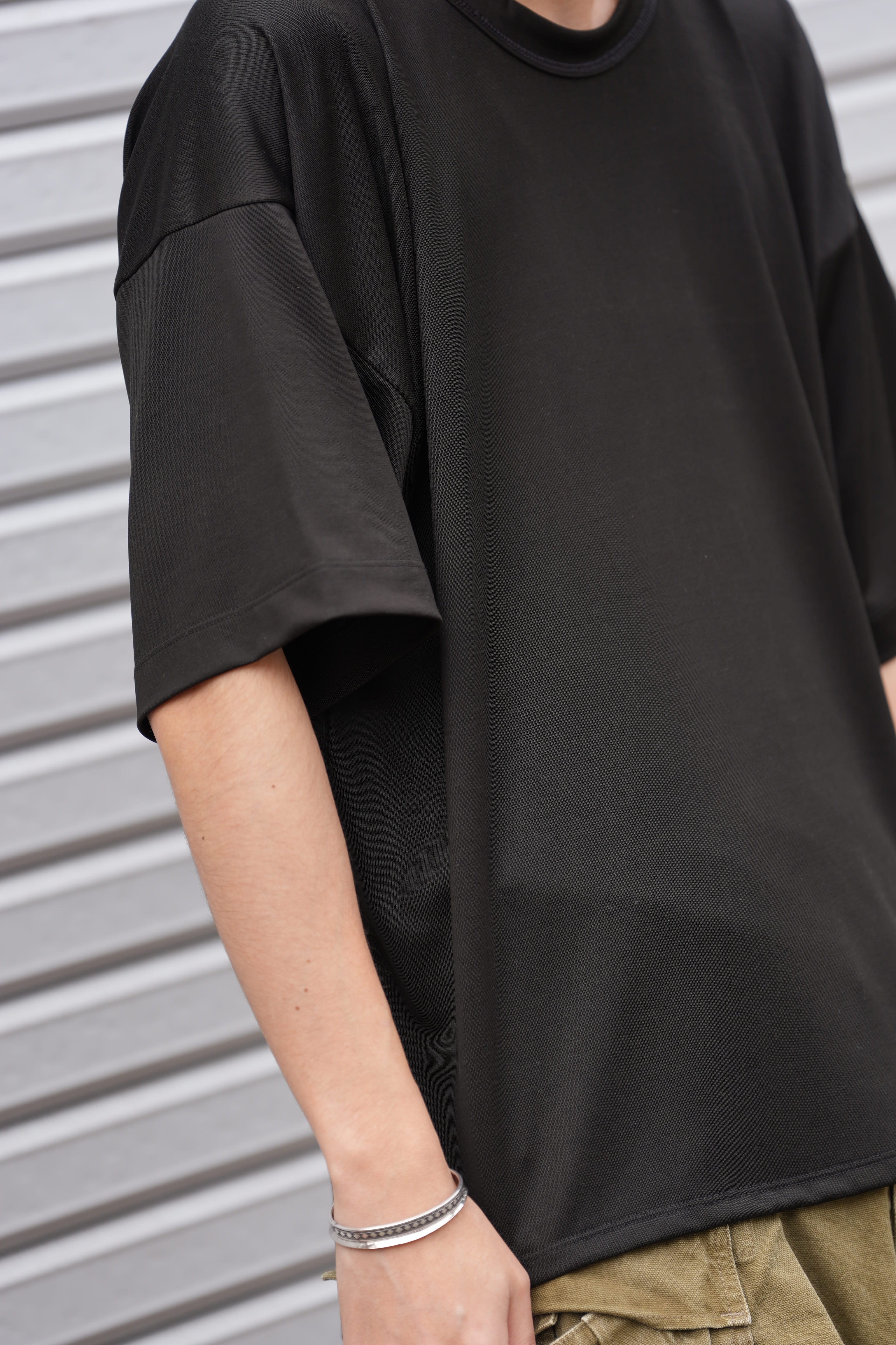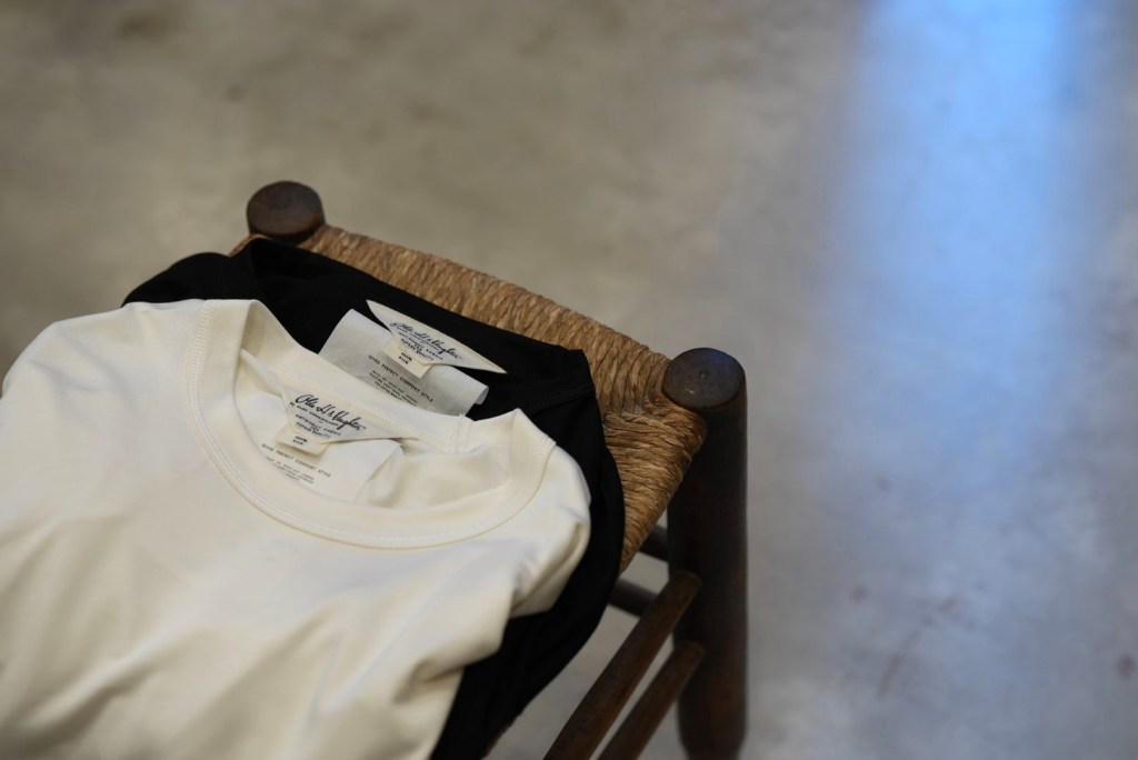 シルク天竺で仕上げたカットソーだとシルクの光沢さ、品の良さが際立ってしまいますが、ドーターのシルクはその辺りの塩梅も良いので、綺麗めにまとめなければいけないという事はありません。