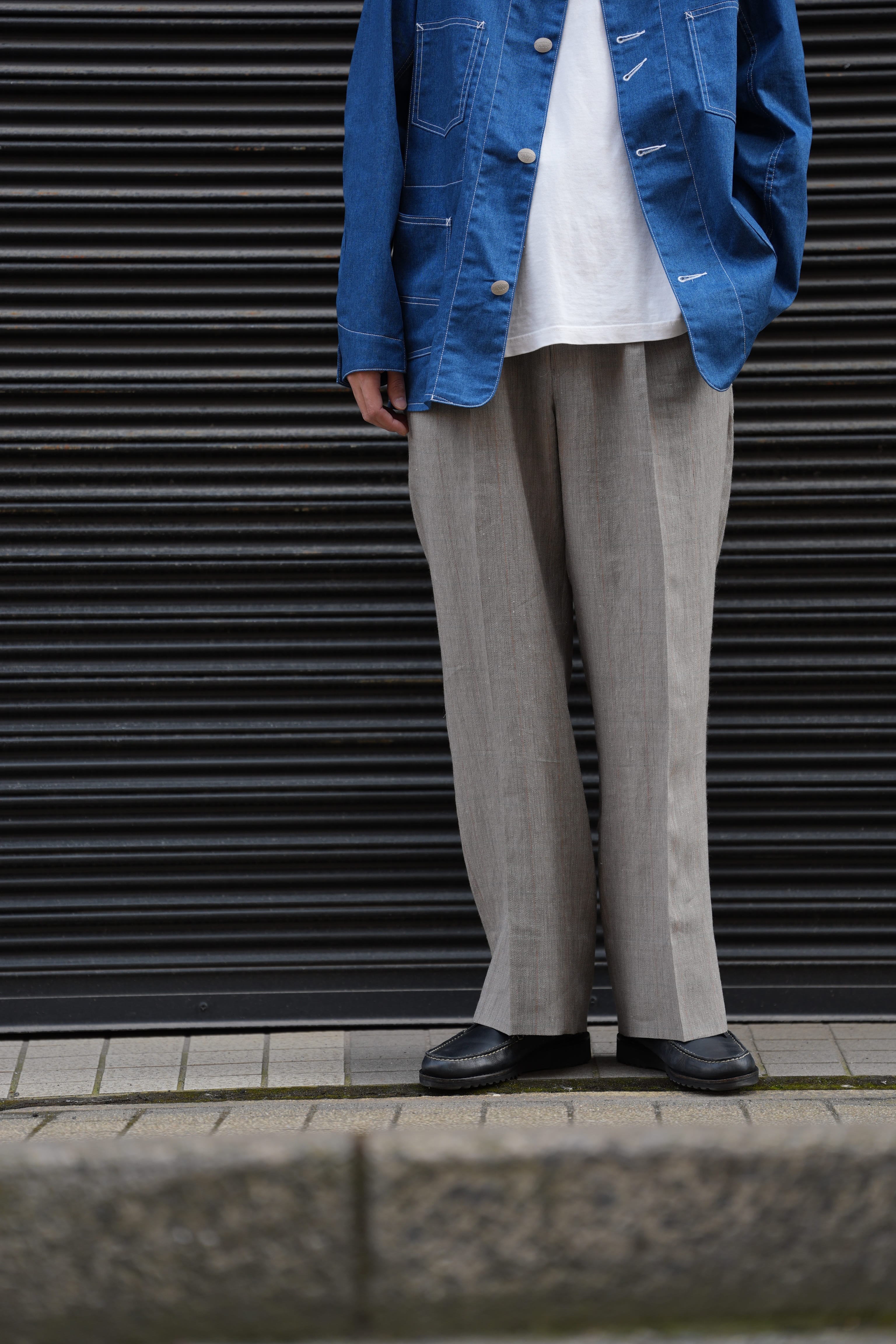 昔ウールモヘアのkolorのブサイクパンツを気に入って穿いていましたが、あの質感を少し思い出しました。でもあれは秋冬として展開されていた生地、あの質感に近しい表面上のタッチだが、しっかりと春夏仕様であるという何とも言葉で表現するのが難しい生地でもあります。