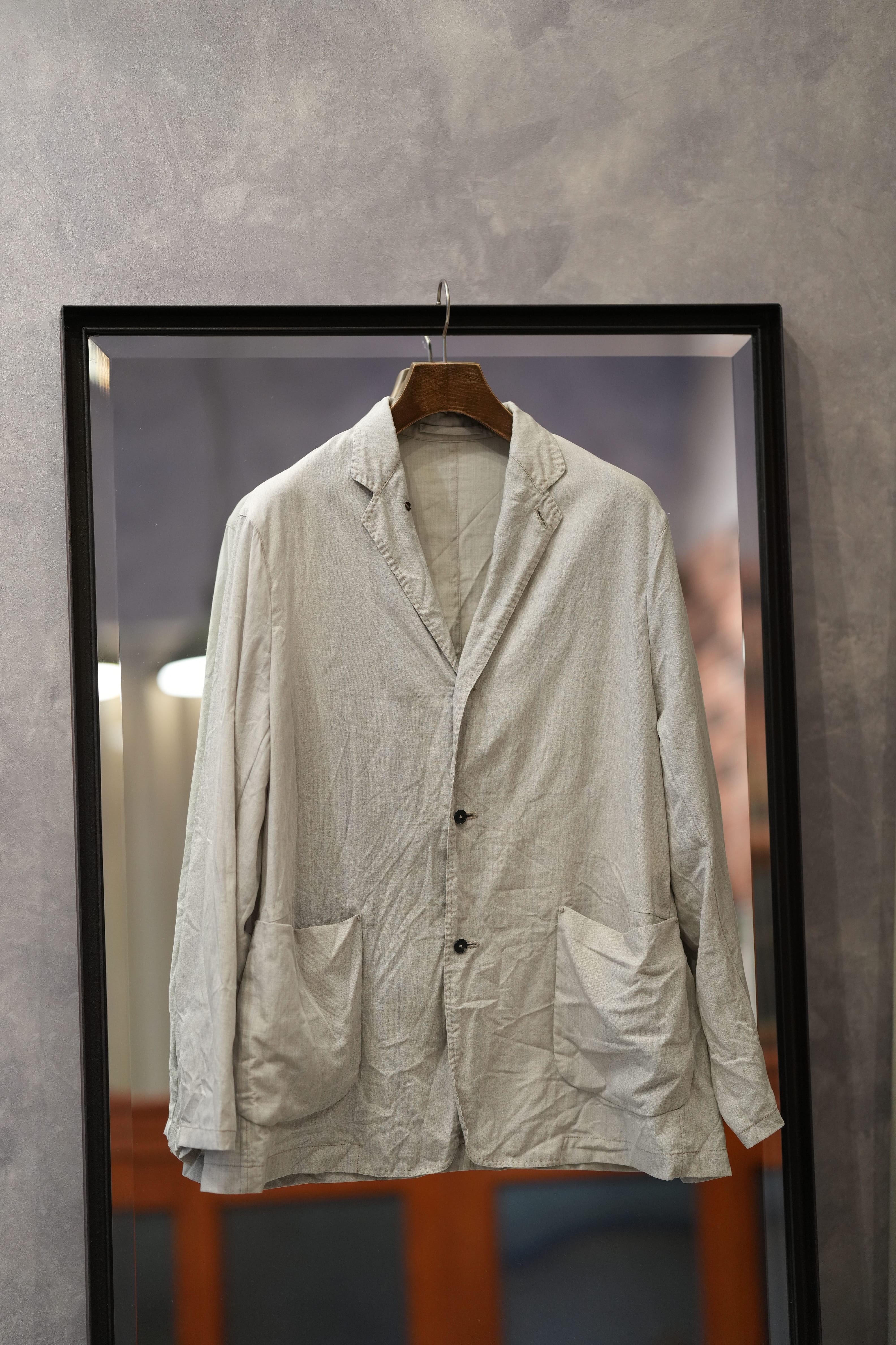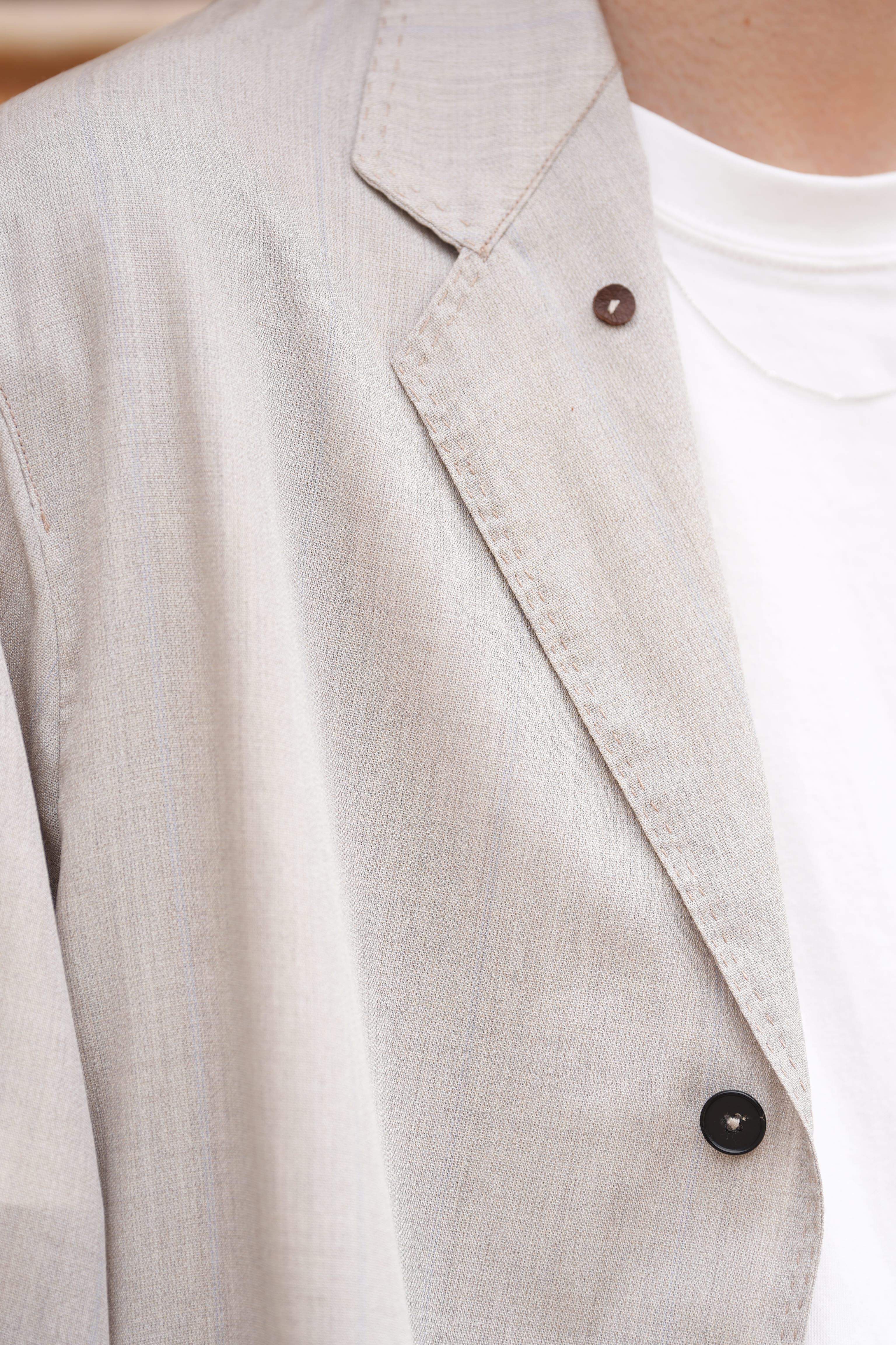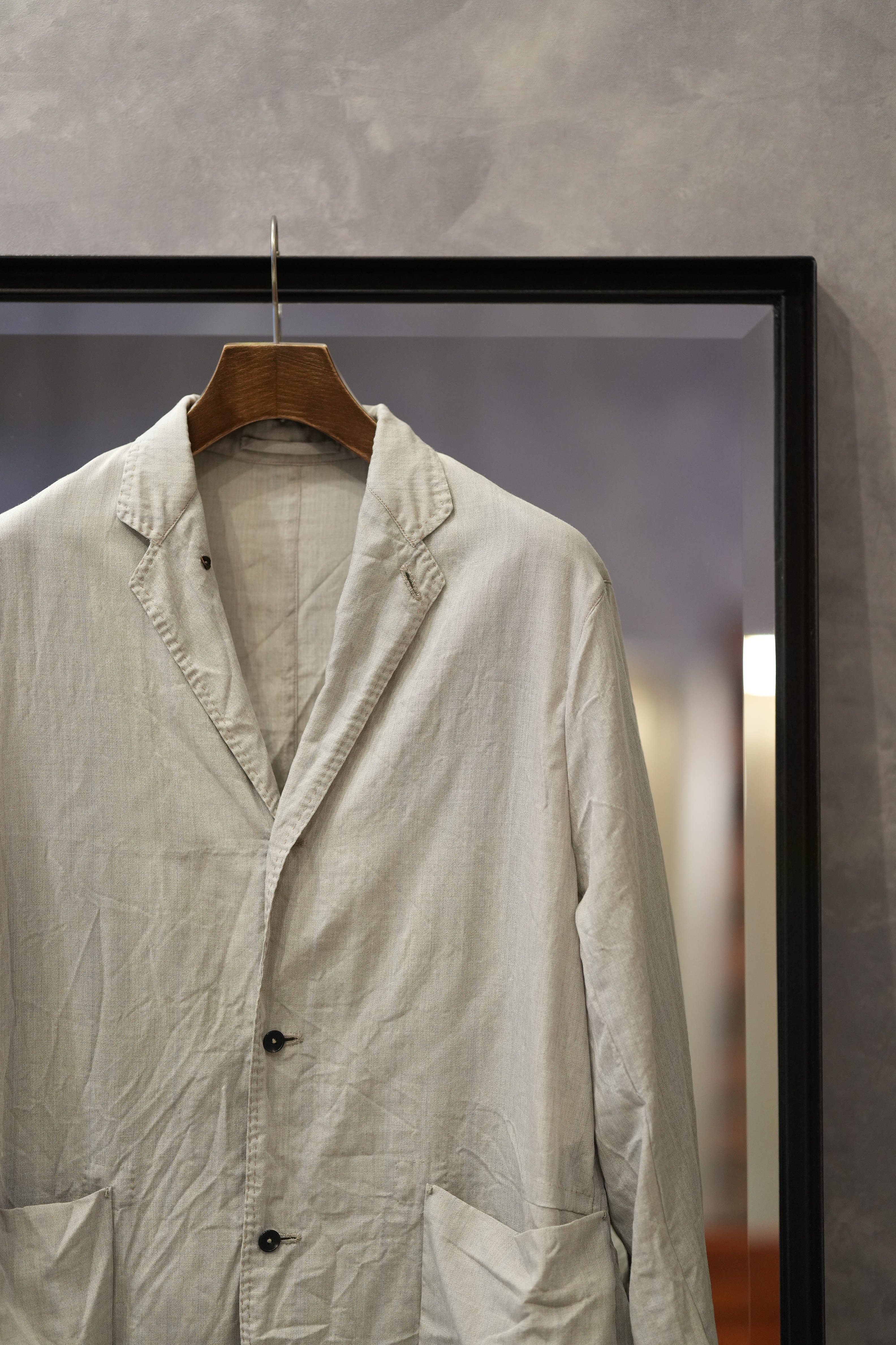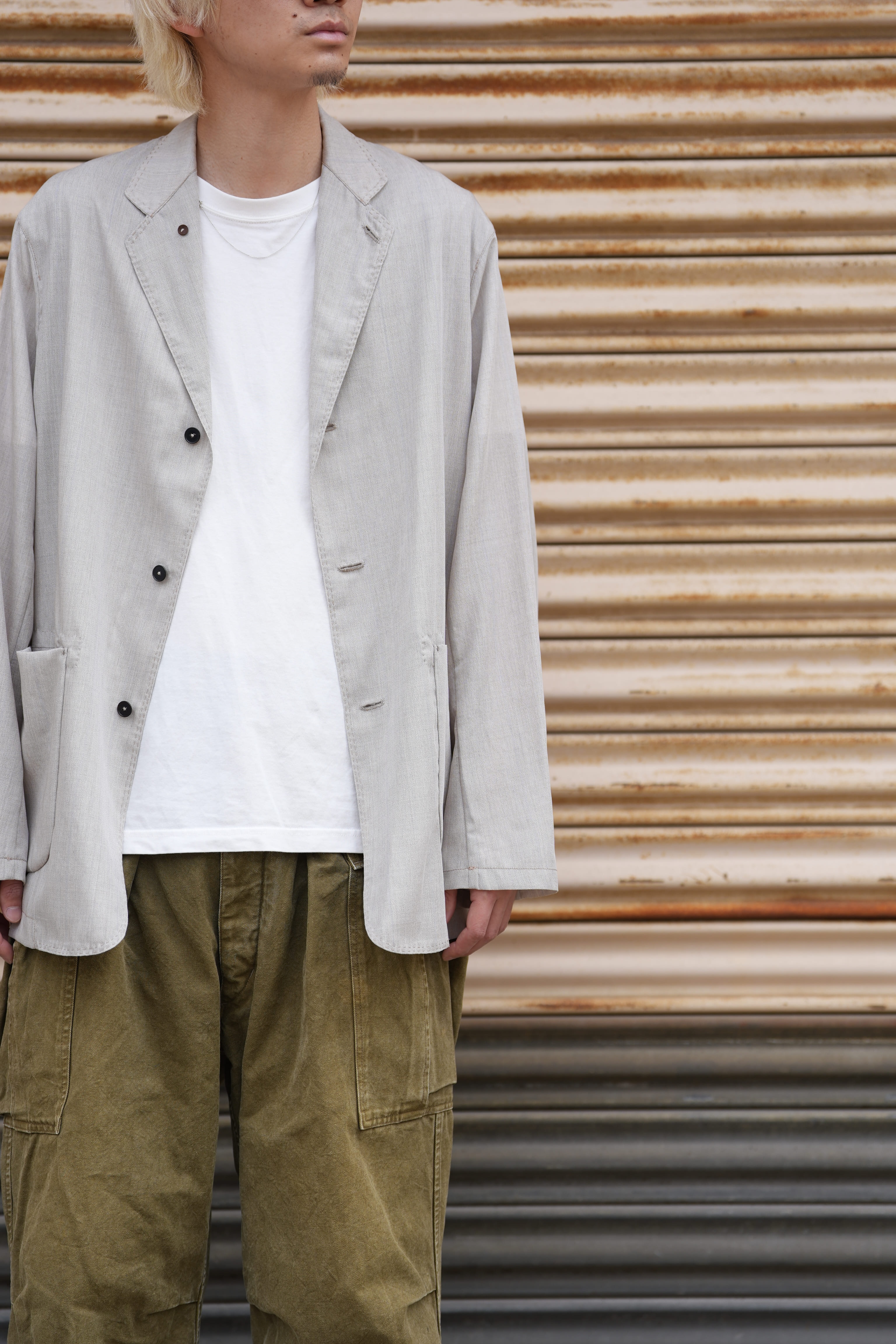 夏ドSリネンに救われた方なら分かっているはず、半袖よりも涼しい長袖は存在すると。袖があるとかは関係ない、生地の面積は関係ない、ジャケットを身に纏っている感覚はある、しかし、生地を纏っているとは思えない程の通気性と裸よりも心地の良い、夏を快適に生きるためのドライな肌あたりを生み出しのが俺のサマーウールです。