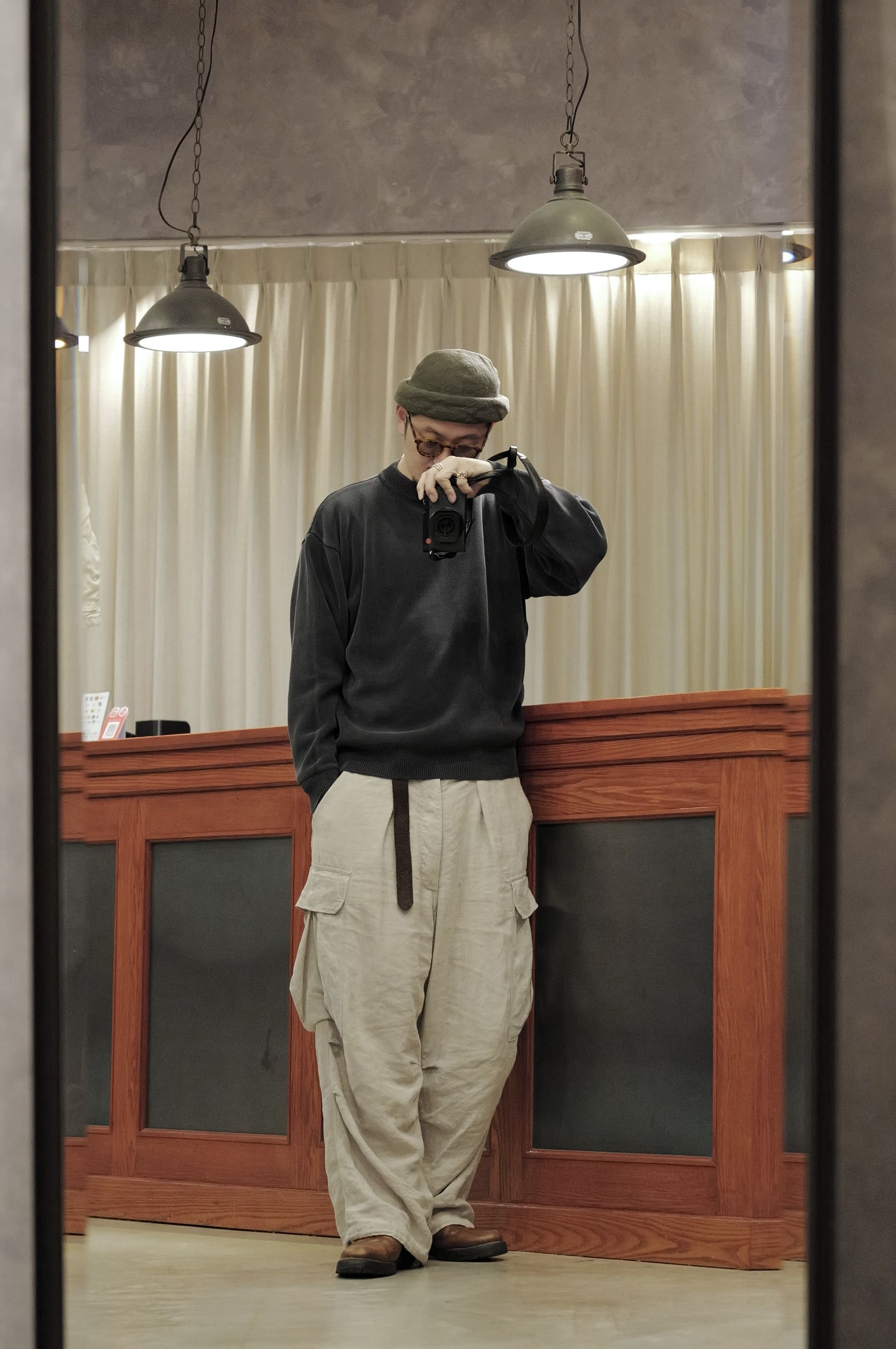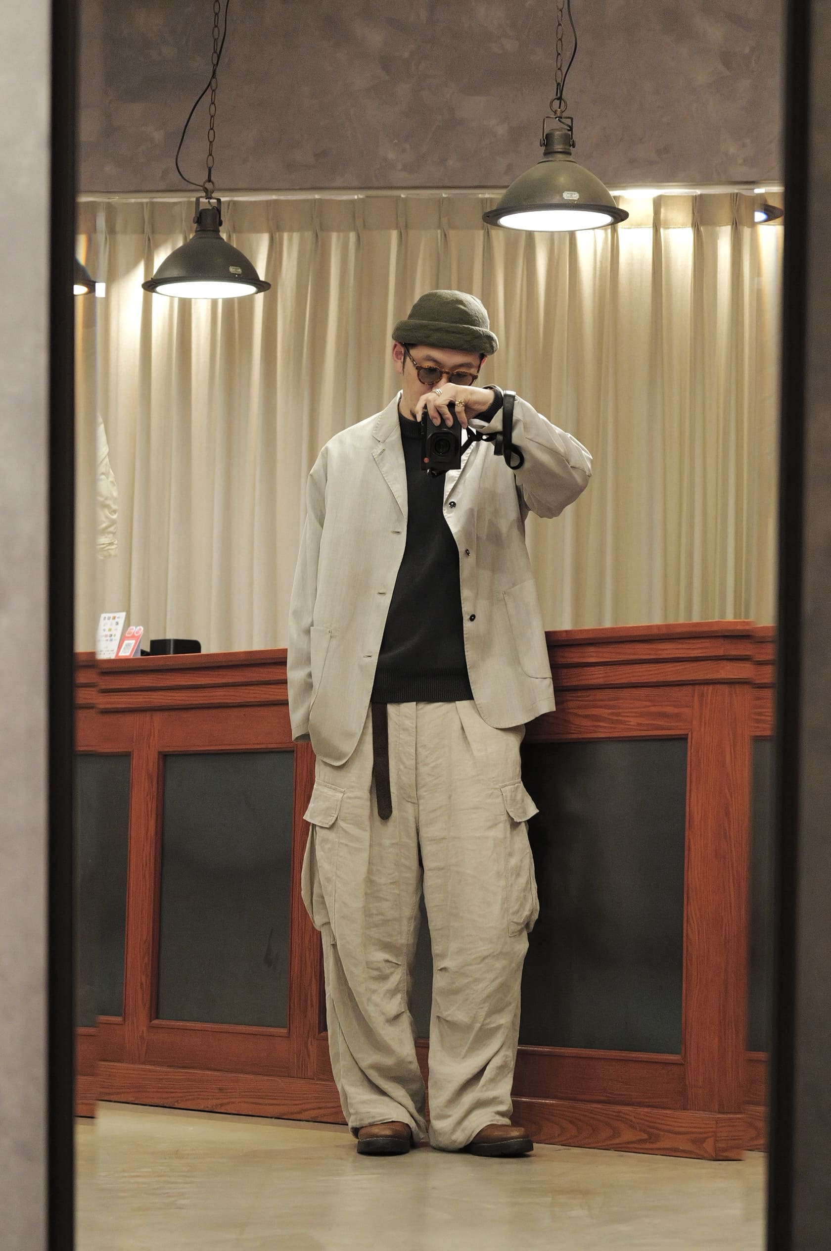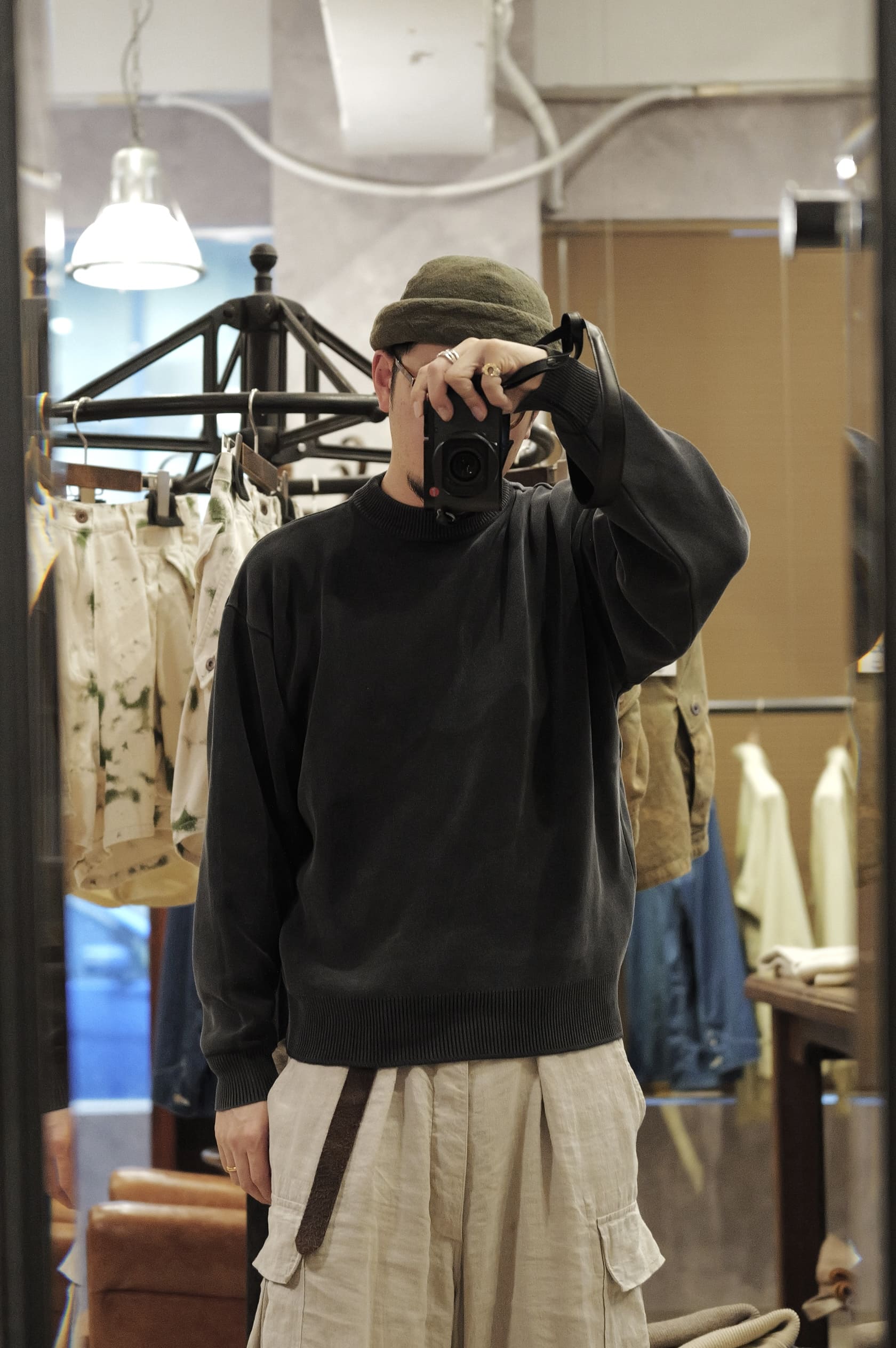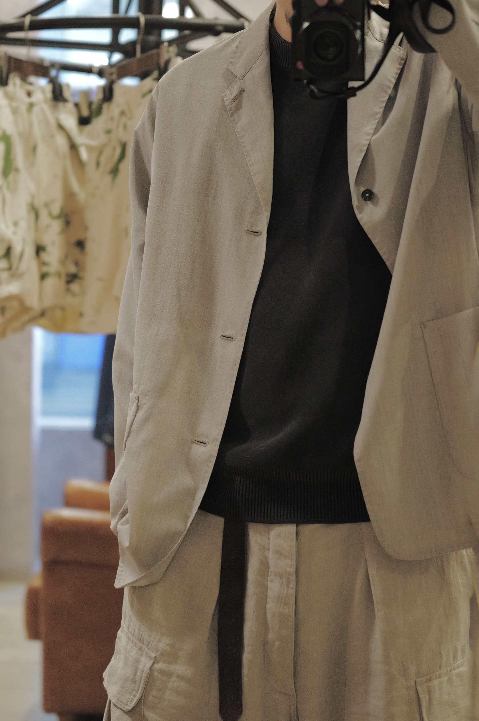 首を痛めながら使ったカメラは最近買ったLeicaQ3 43です。凄く凄く良いカメラです。最近また写真を撮ることが楽しくなってきました。これはライカ独自の色味調整が入っているのでいつもの色味が全然違います。しっかりと洋服の色味を表現しつつも全体の雰囲気に温かみとナチュラル味を感じる絶妙な色出しです。